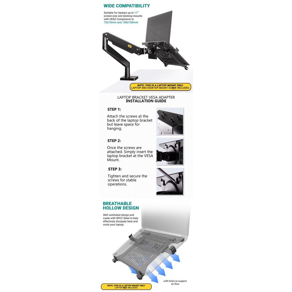 North Bayou NB FP-2 Steel Laptop Bracket Laptop VESA Mount Adapter for Monitor Desktop Mount