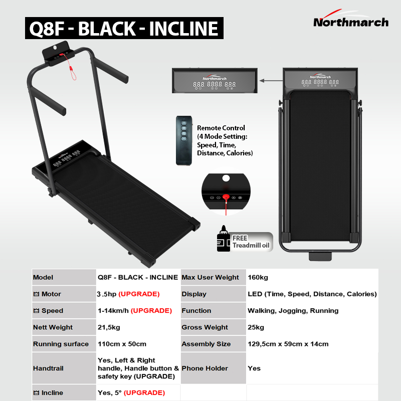 NorthMarch[COD]Large Screen3.5HP Electric Treadmill with Remote Portable treadmill Flat treadmill