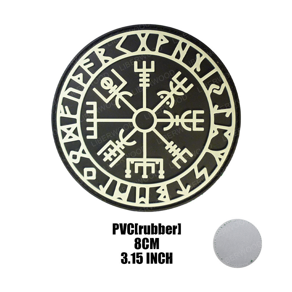 Northern Europe Viking Compass Glow In Dark Tactical Patches PVC Rubber Badge Valhalla Norse Rune Pirate Emblem Appliques