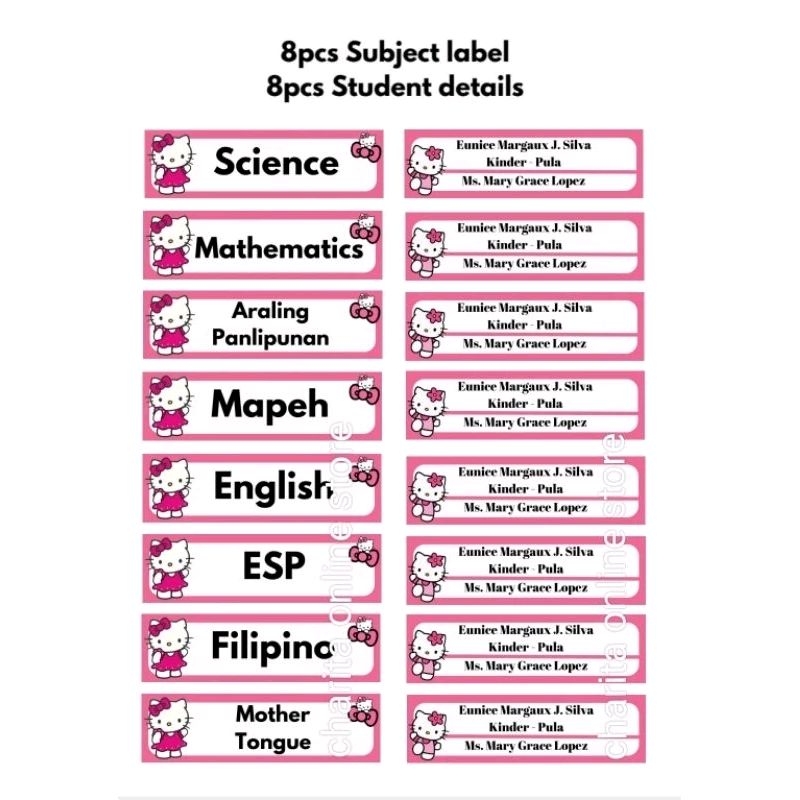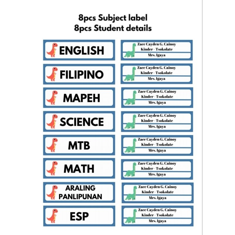 Notebook Personalized Sticker Label / 8pcs Subject label & 8pcs Student details