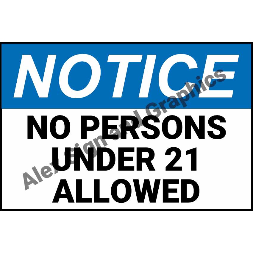 Notice: No Persons Under 21 Allowed PVC Signage - A4 Size (7.5 x 11.25 inches)