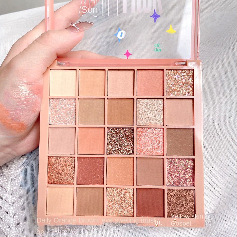 Nude low saturation new wild 25-color eyeshadow palette pearlescent matte earth color taro mud orange brown plate cheap eye shadow twenty-five-color eye shadow palette makeup set