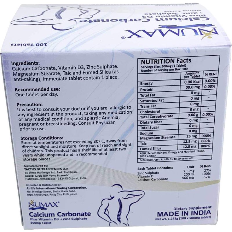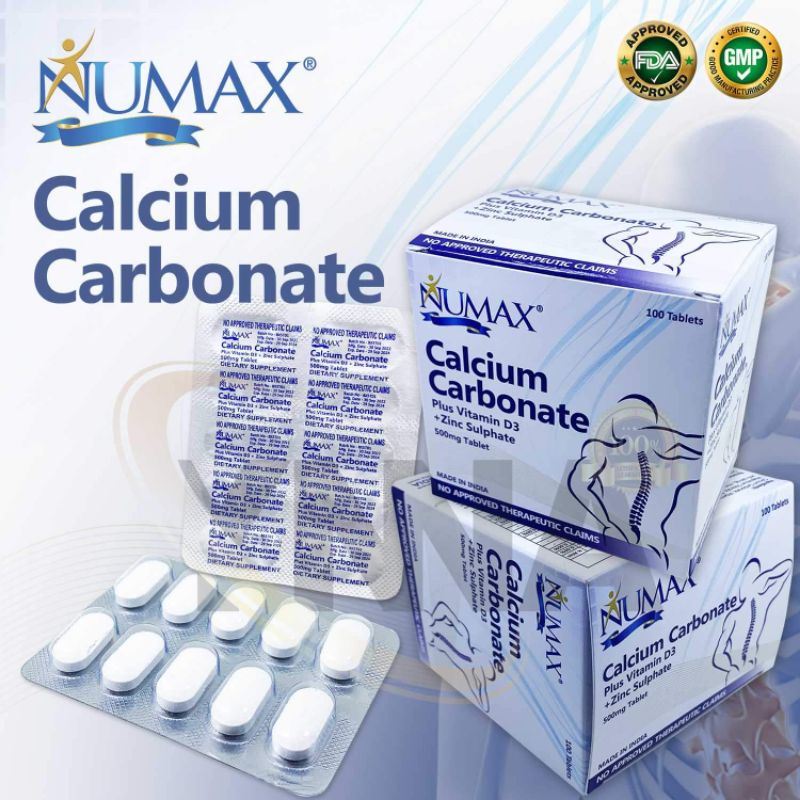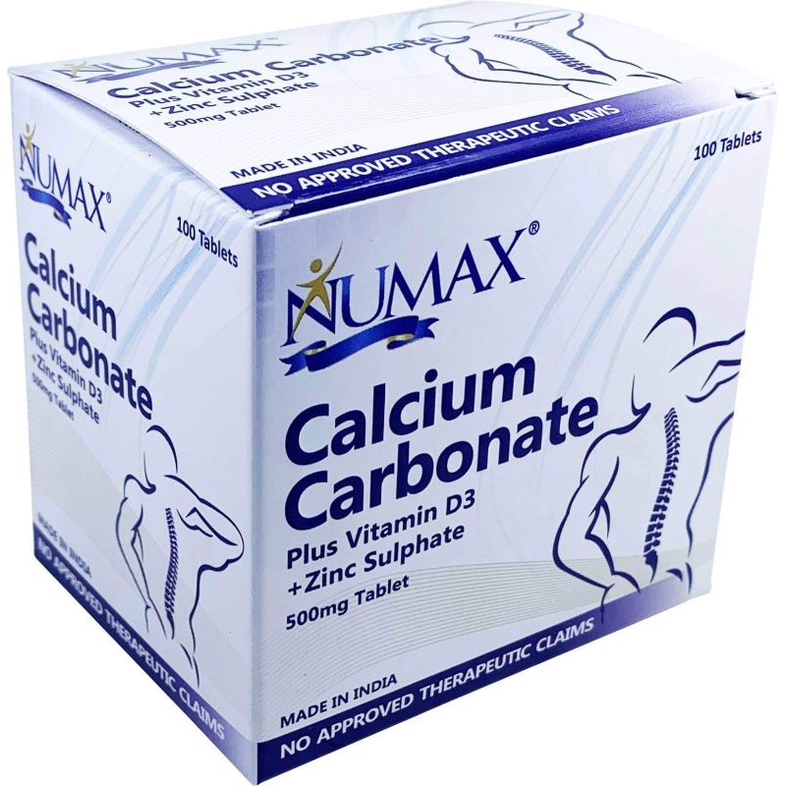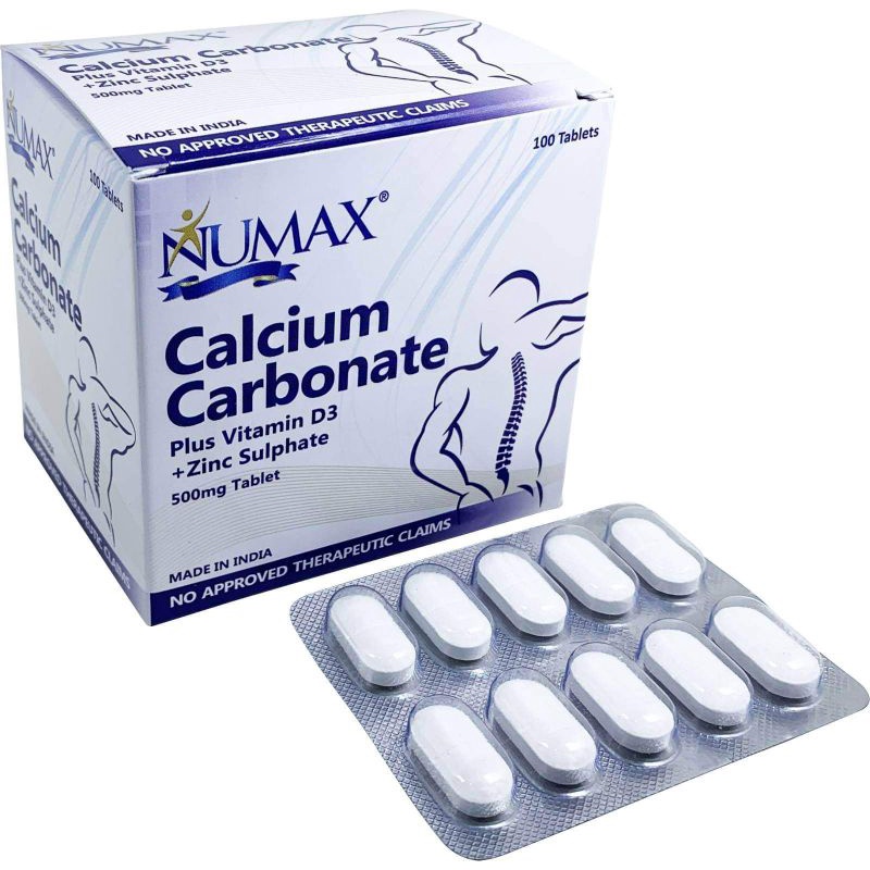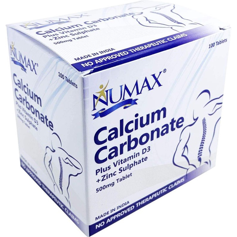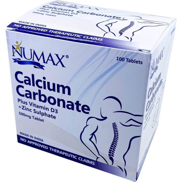 Numax Calcium Carbonate +Vit D3 +Zinc (100 capsules per Box)