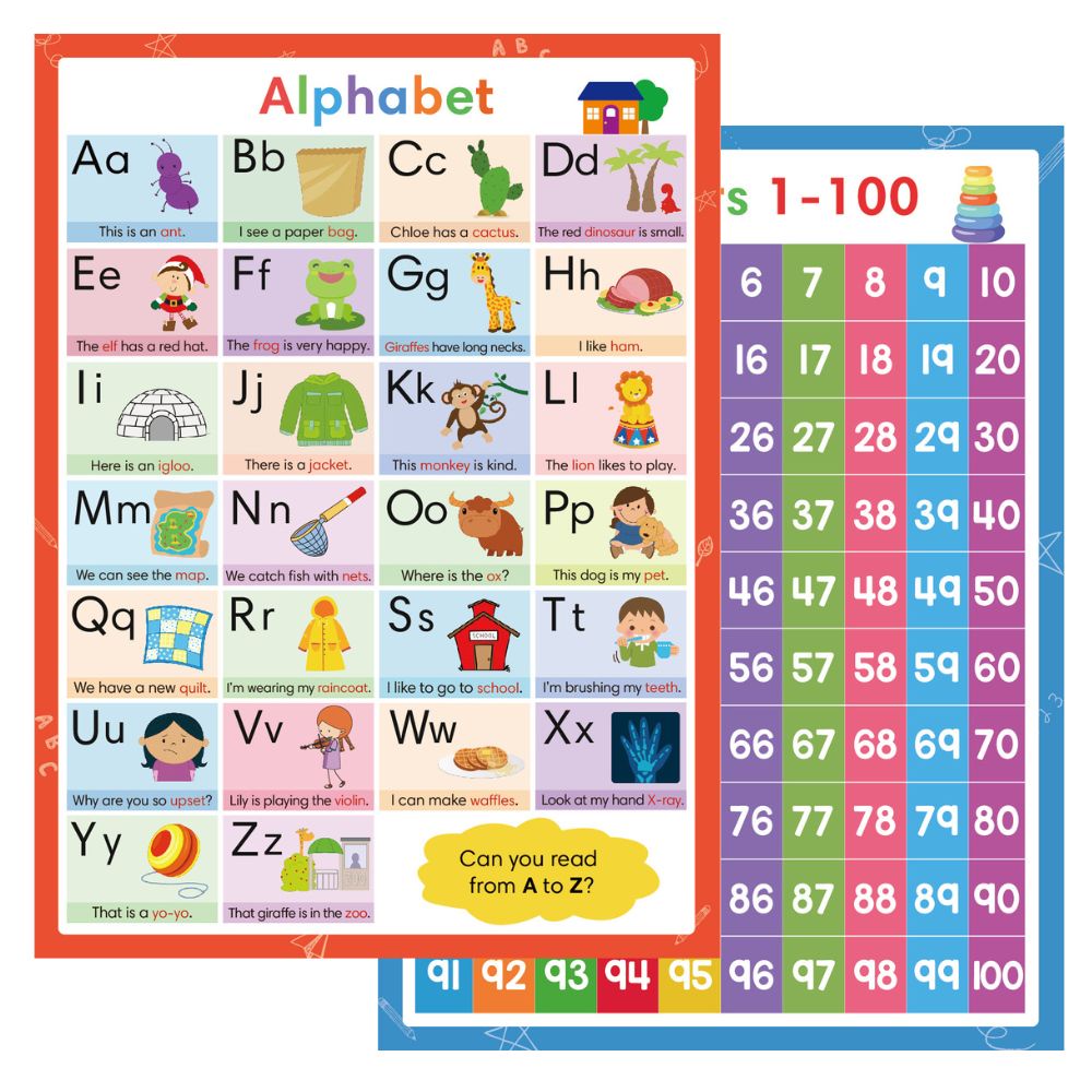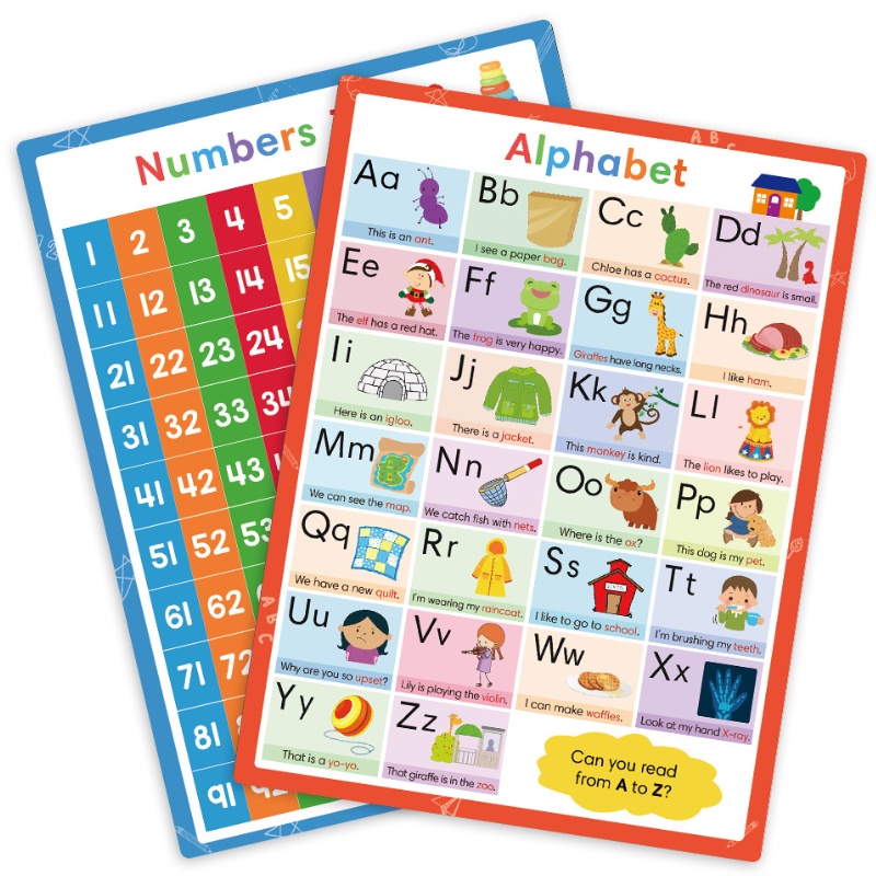 Number 1-100 Alphabet Educational Posters for Kids Baby English Posters Preschool Classroom Decoration Teaching Aids