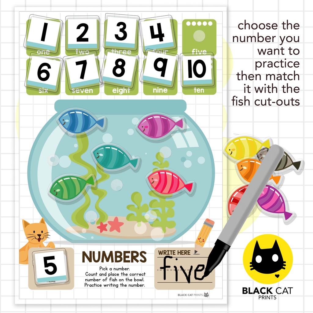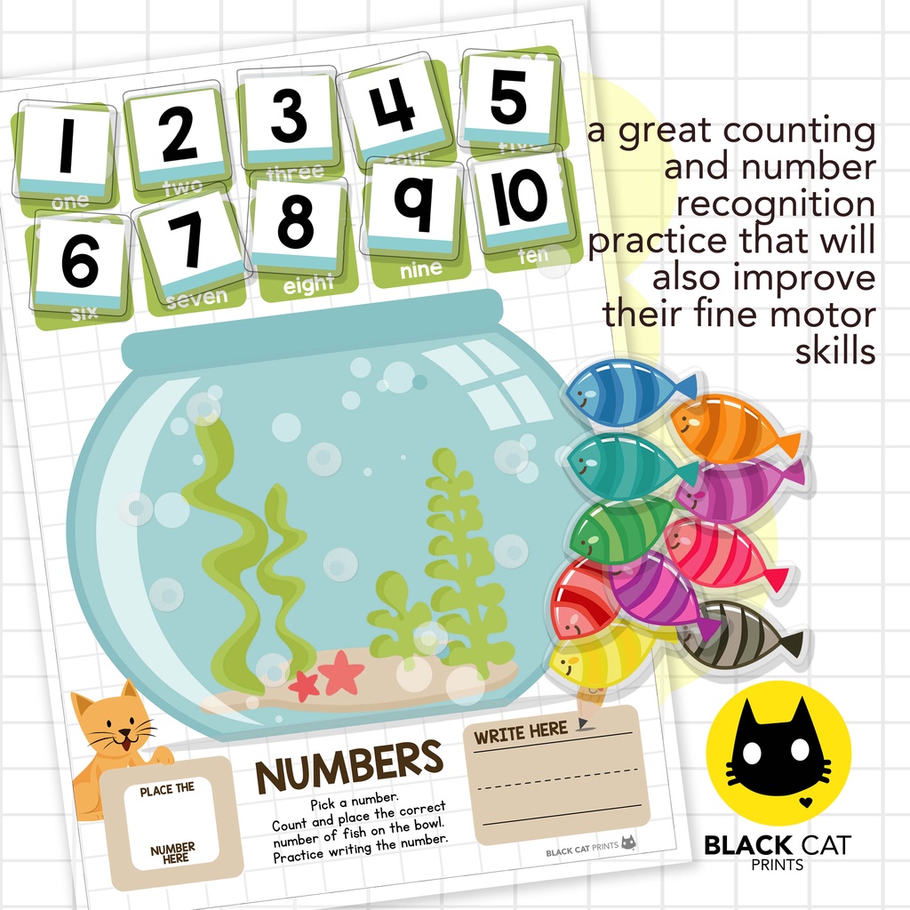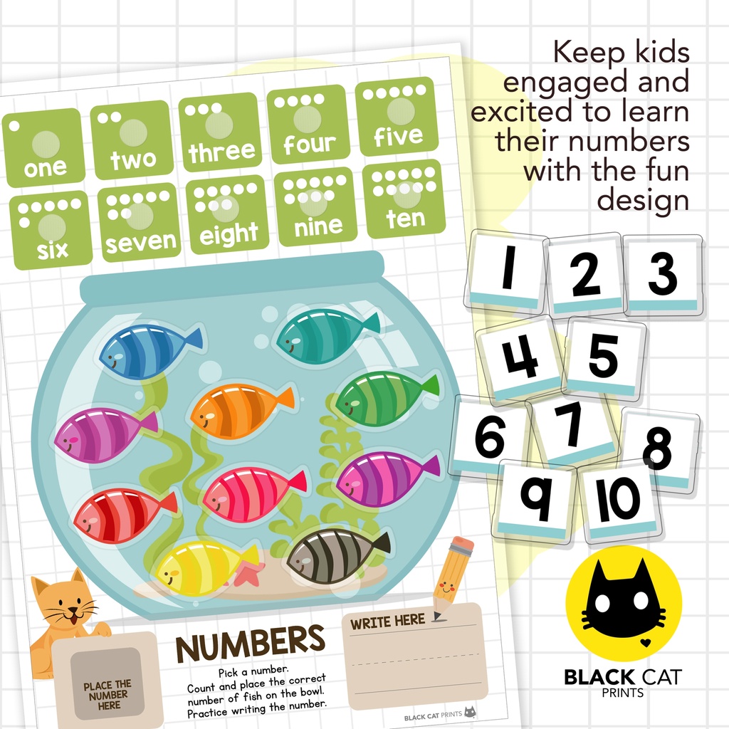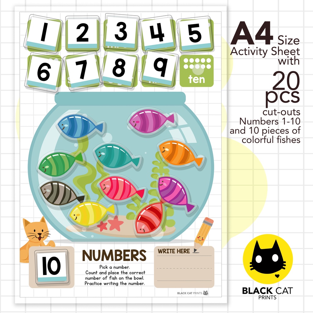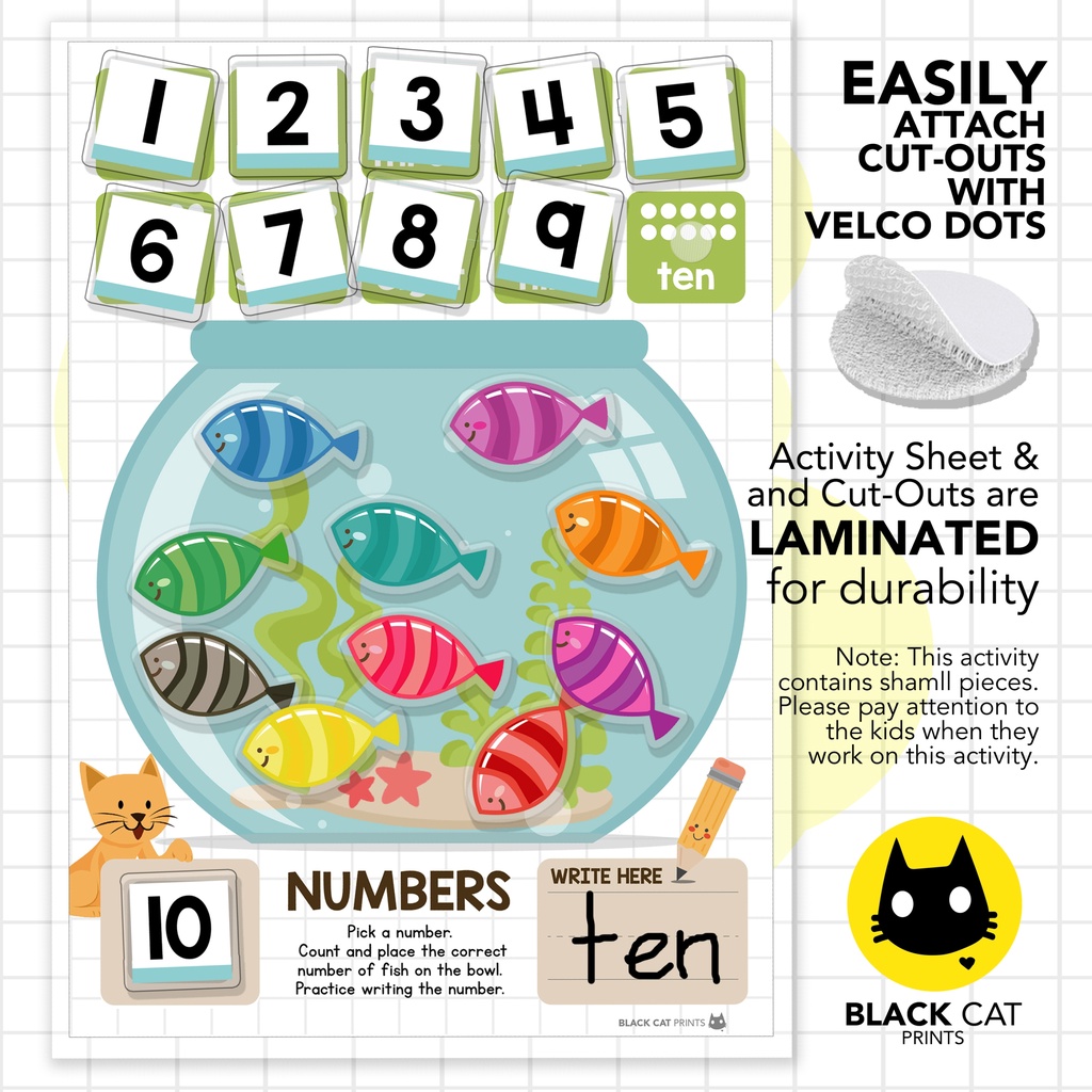 Numbers Counting 1-10 Activity w/Velcro Dots (A4 Size w/ Cut-Outs / High Quality Prints / Laminated)