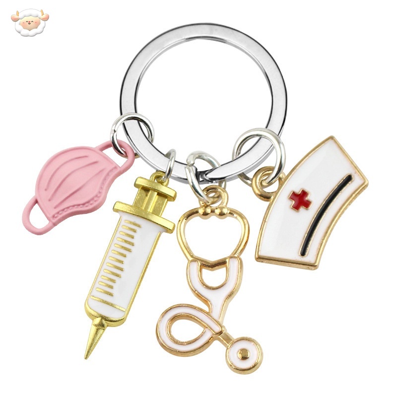 Nurse Doctor Mask Keychain Medical Paramedic Syringe Syringe Stethoscope Keychain H