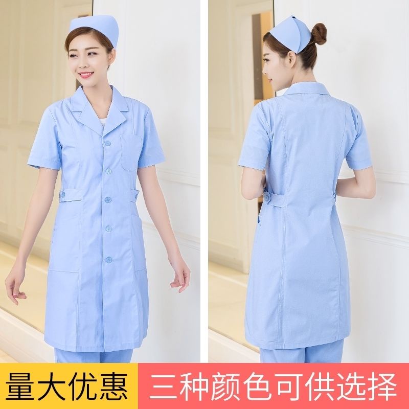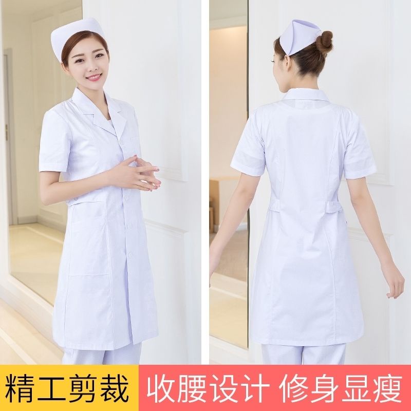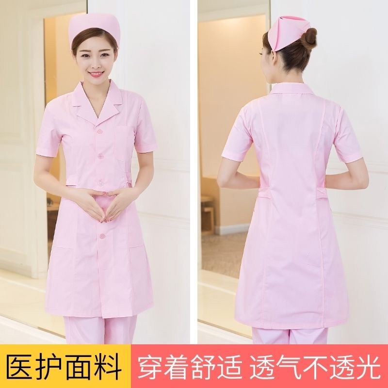 Nurse uniform long-sleeved summer dress female white coat waist short-sleeved pink pharmacy beauty salon teacher doctor