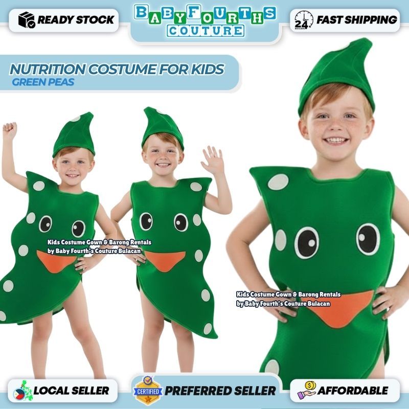 Nutrition Month Peas Kids Costume Non-woven Fabric Fruit & Vegetables Outfit School Event Costume