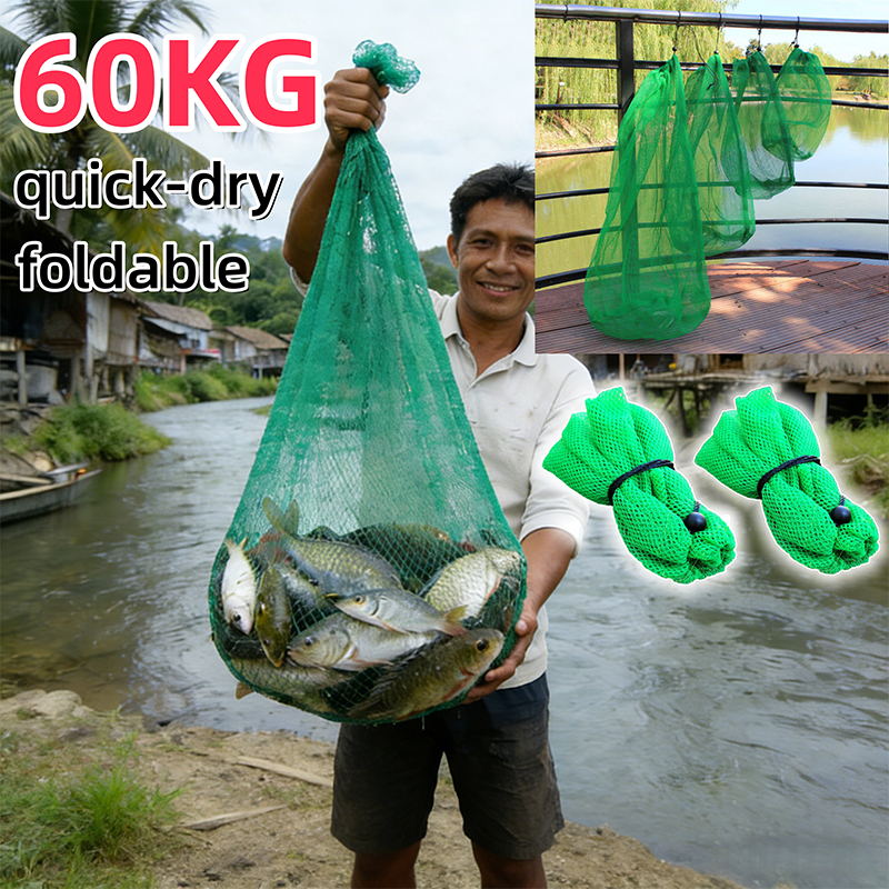 Nylon Fishing Net Bag Fish Bag Fishing Supplies Green Net Bag Dense Net Fishing Accessories