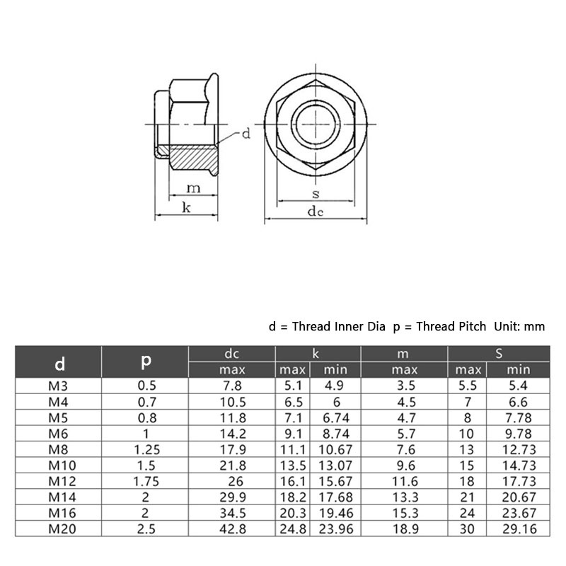 Nylon-Insert Flange Locknuts A2 Stainless Hexagon Hex Nut M3 M4 M5 M6 M8 M10 M12