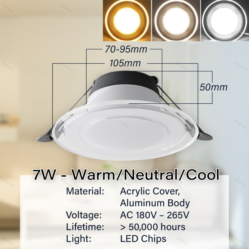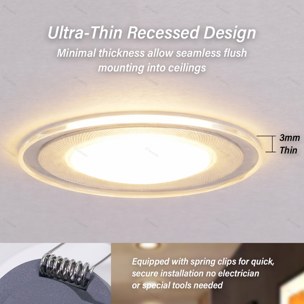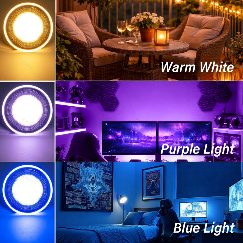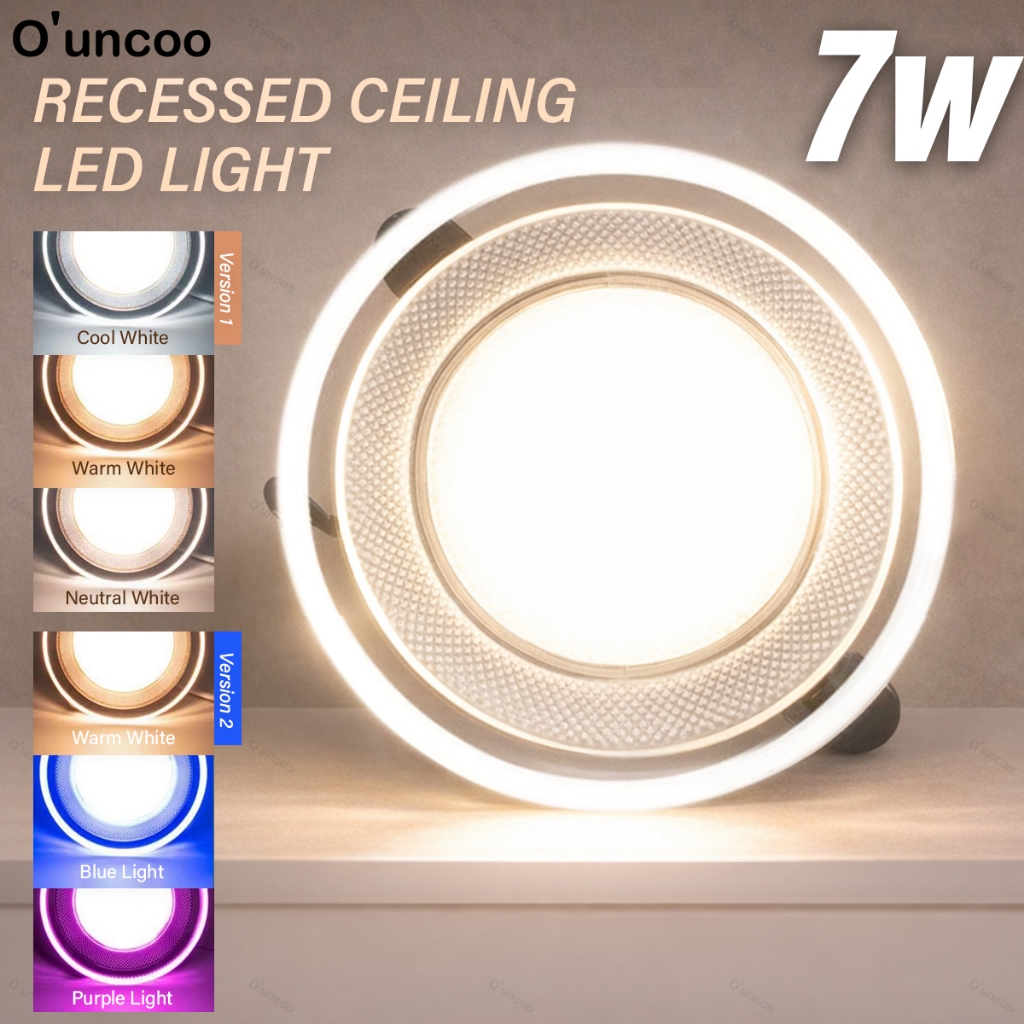 O'uncoo Pin Light Tri color Led Ceiling 7Watts Downlight Recessed Panel Lights Purple/Blue/Warm