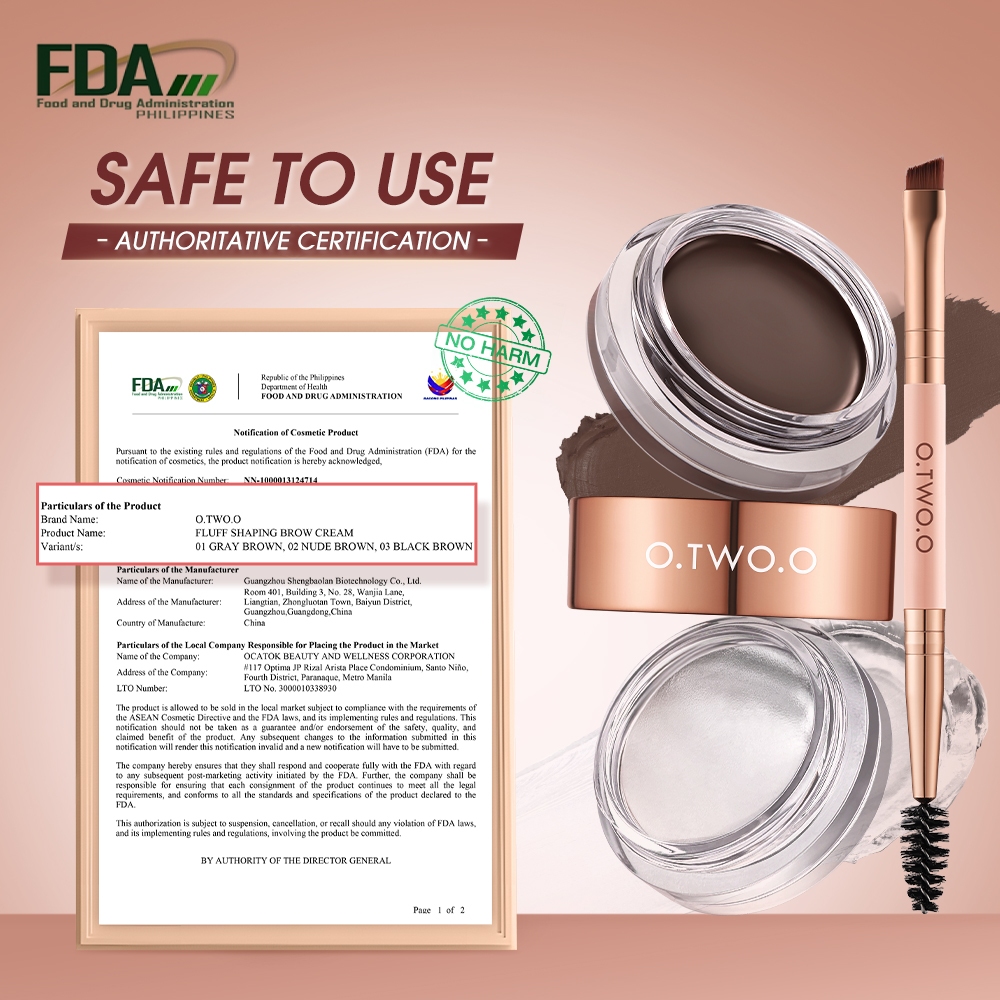 O.TWO.O 2 In 1 Eyebrow Cream& Bow Wax With Brush 3 Colors Long Lasting Waterproof Cosmetics