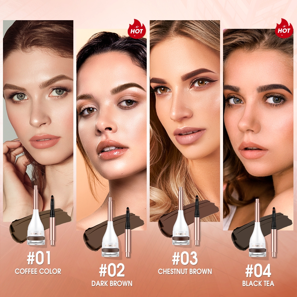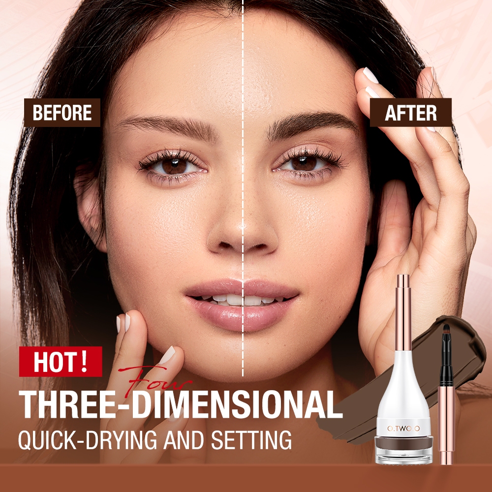 O.Two.O Waterproof Eyebrow Cream With Brush Eyeliner Smudge-Proof High Pigment Lasting Multi-Uses
