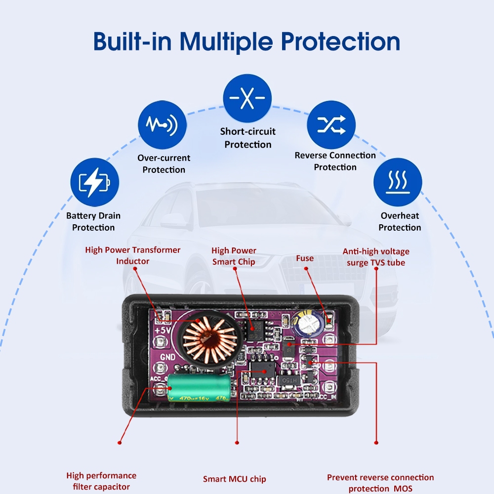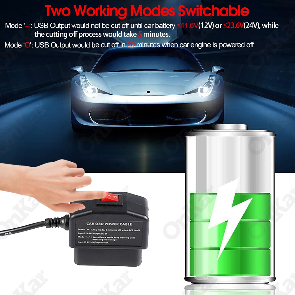 OBD OBD2 To Micro Type C Mini USB Charger Power Cable For Dash Camera Car DVR 24h Parking Surveillance Car Accessories 15W Battery Protection Car Dashcam Hardwire Kit