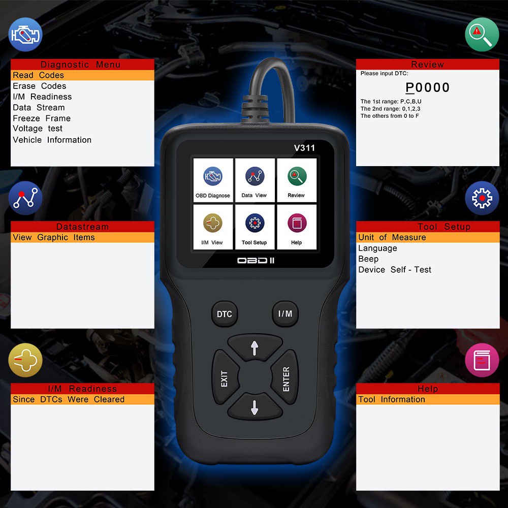 OBD2 Scanner Car Code Reader Scan Tool V311/V311B OBDII EOBD Read Clear Fault Code OBD 2 Car Diagnostic Scanner