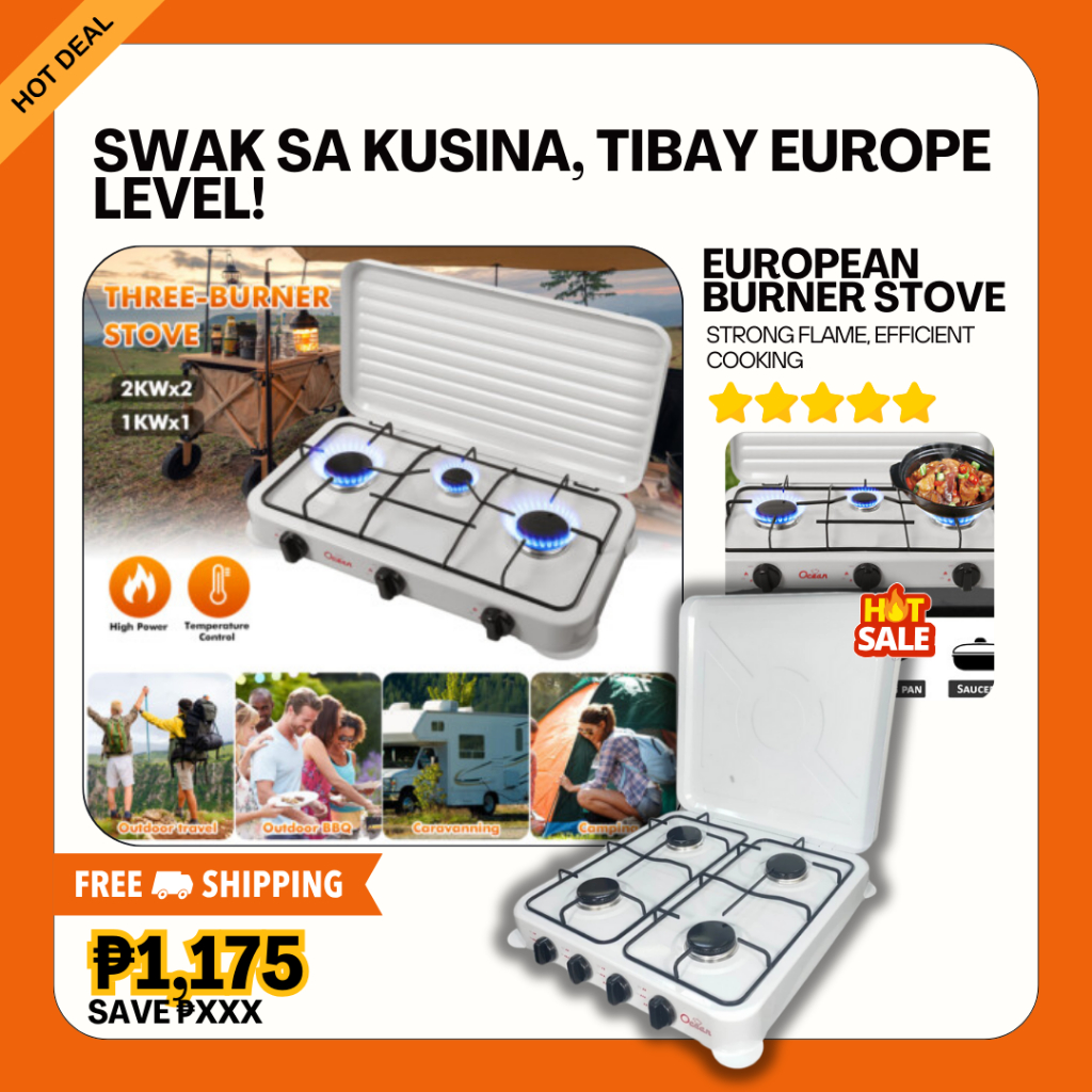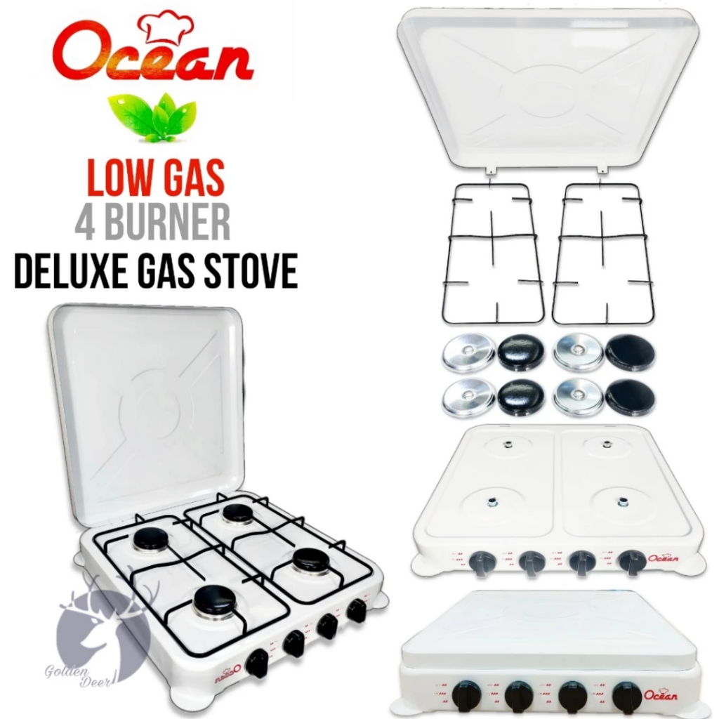 OCEAN DELUXE GAS STOVE ( 2 3 4 BURNER ) COUNTERTOP STOVE W/ PROTECTIVE COVER TABLE TOP LOW GAS STOVE