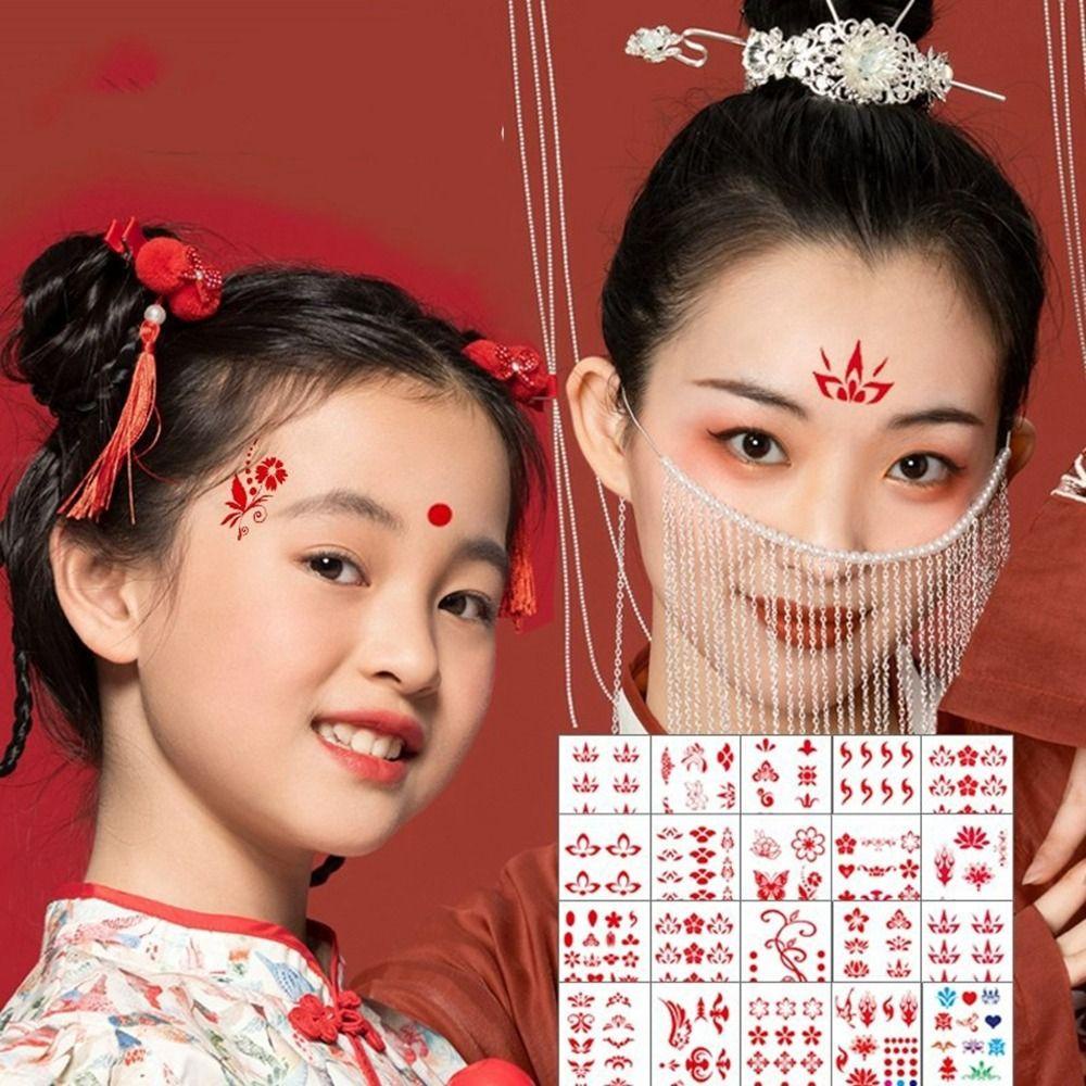 OCEANMAP Forehead Stickers, New Years Beauty Waterproof Eye Makeup Decal, Beauty Chinese Ancient Style Temporary Tattoo Face Tattoo Girl