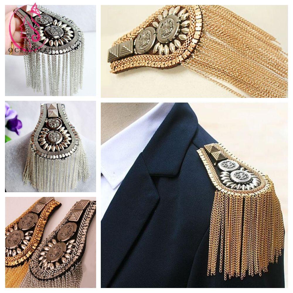 OCEANMAP Unisex Shoulder Mark Jewelry Epaulets Shoulder Flash Spike Shoulder Board Punk Tassel Gifts Brooch/Multicolor