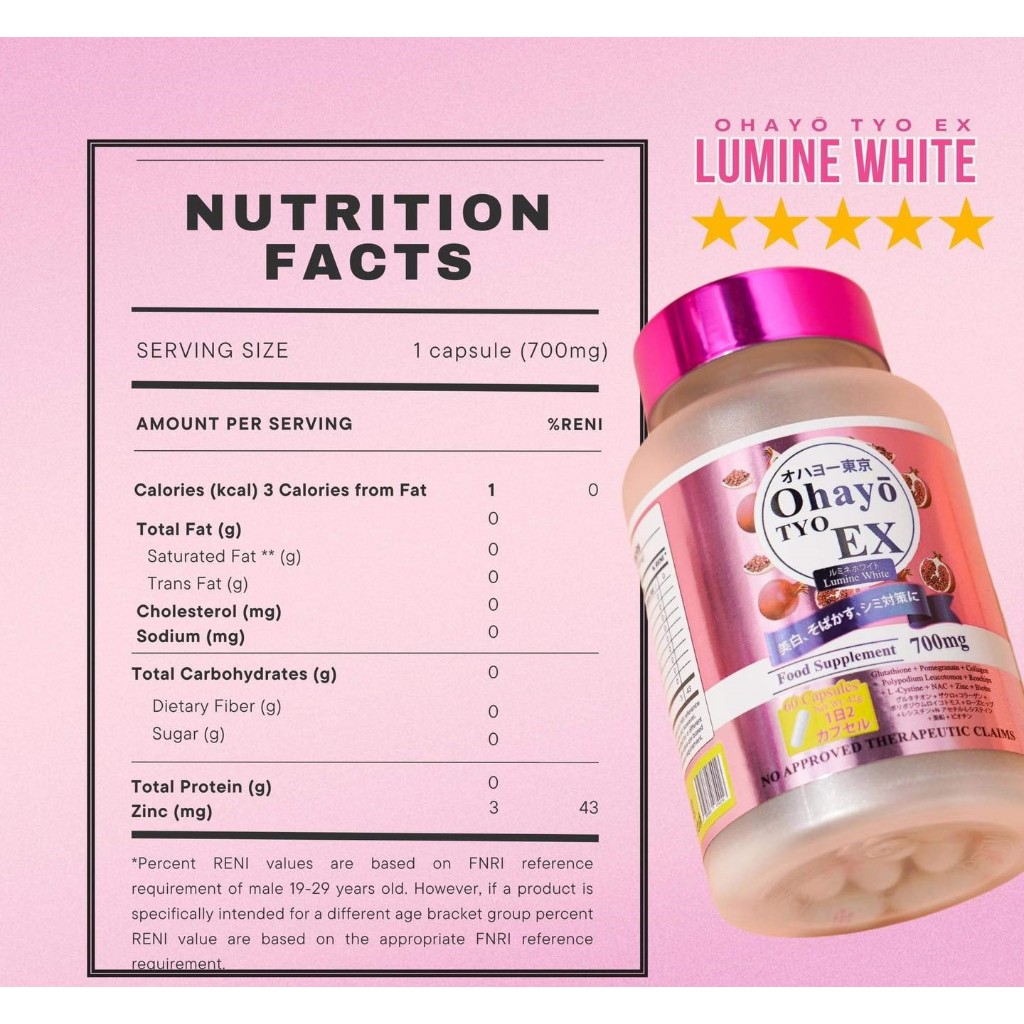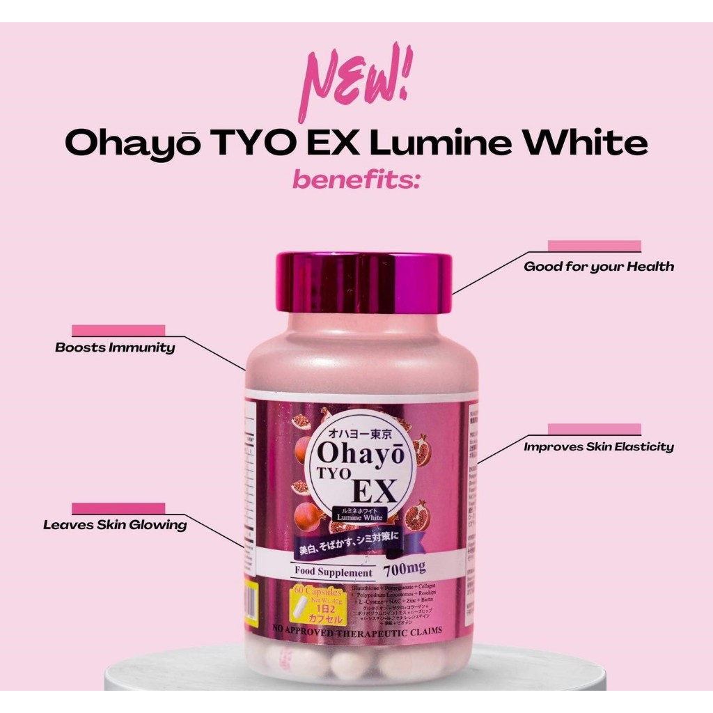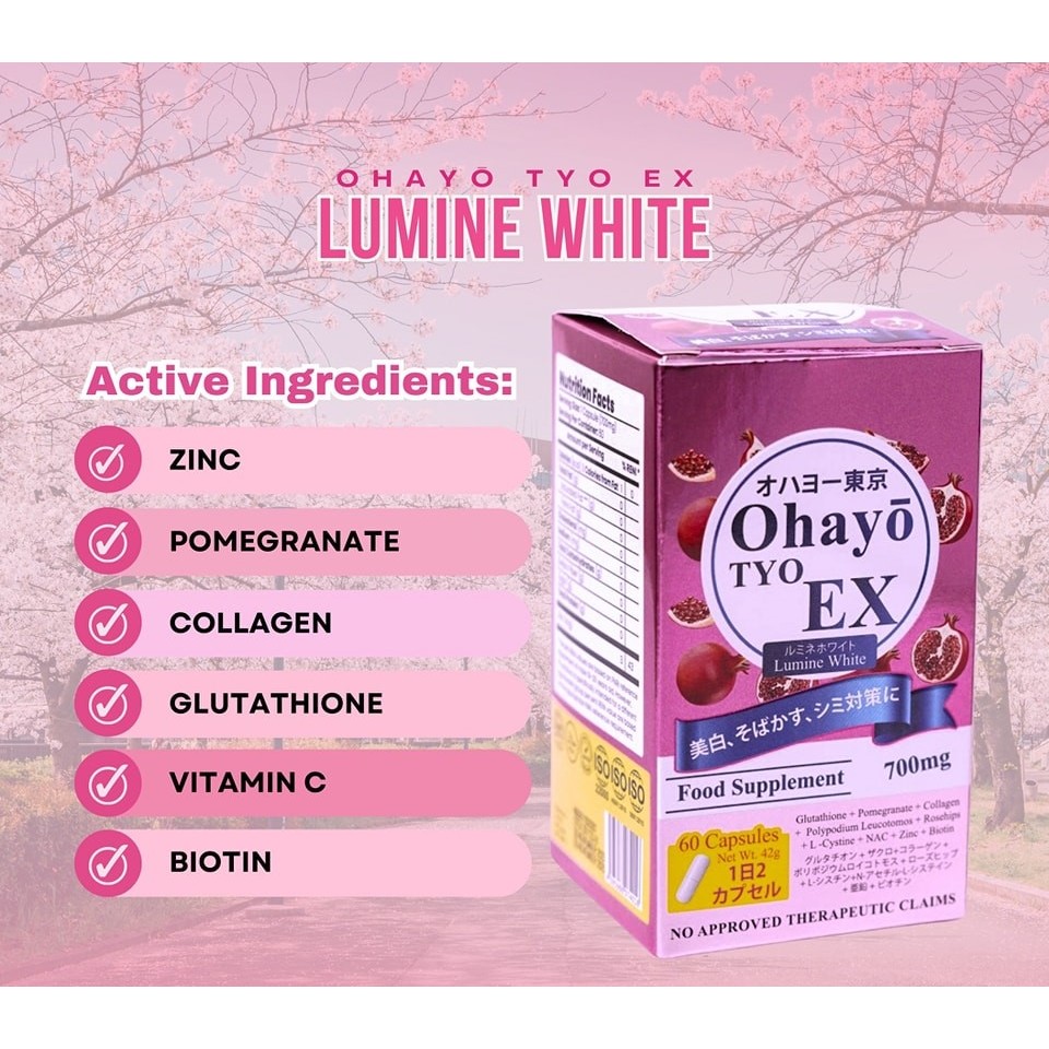 OHAYO TYO EX Lumine White Japan Glutathione 60 Capsule with Zinc Vitamin C Biotin Promegranate