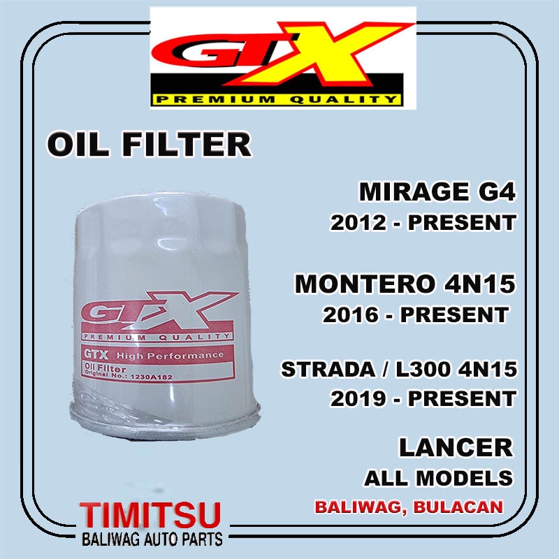 OIL FILTER MITSUBISHI MONTERO GEN 3 STRADA L300 4N15 MIRAGE LANCER ALL MODEL GTX PART NO. 1230A182
