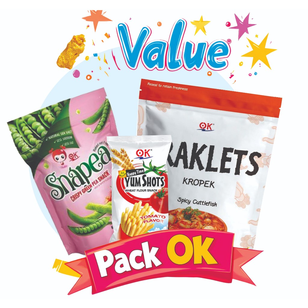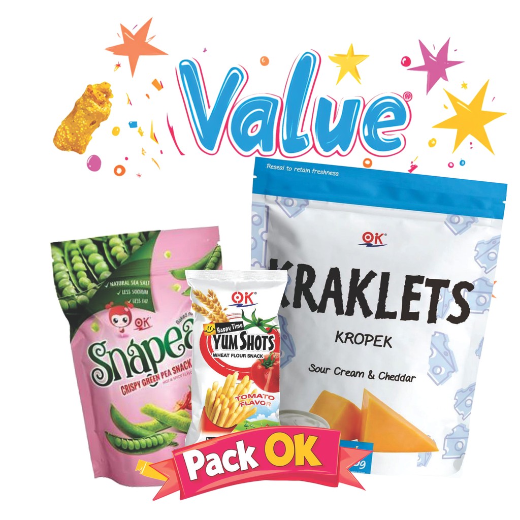 OK Snack [3in1] 320g Kraklets with Snapea and Yumshot Super Valued Pack