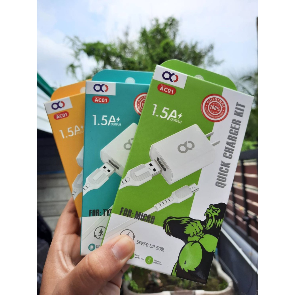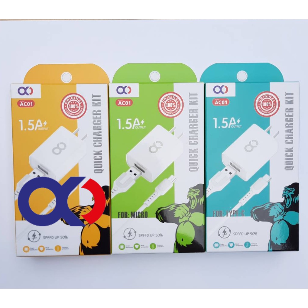 OKD AC01 Charger Cable With 1.5A Set Flash Fast Charging For All Mobile Phones Android & IOS