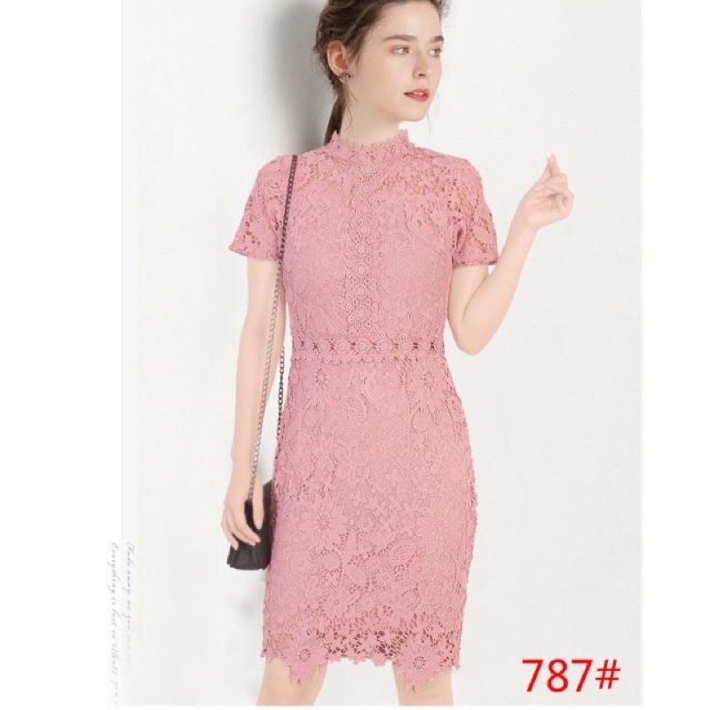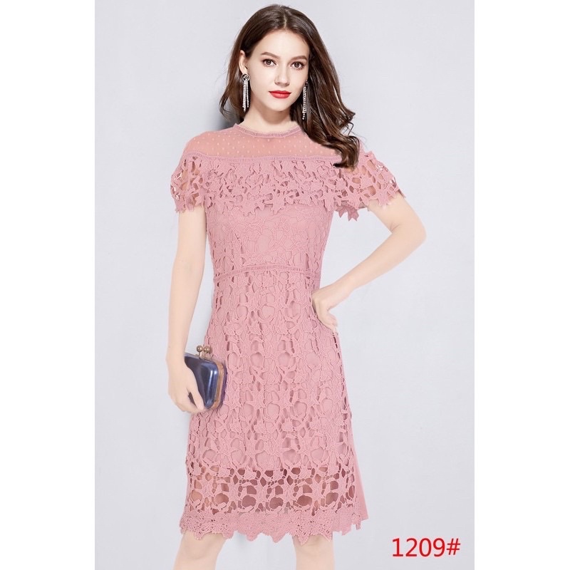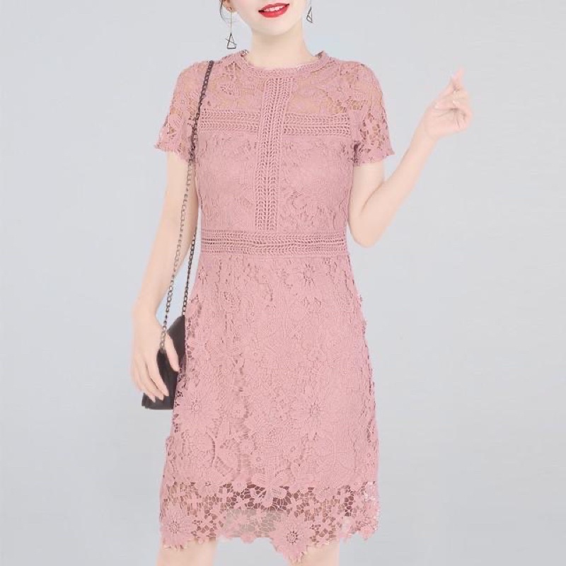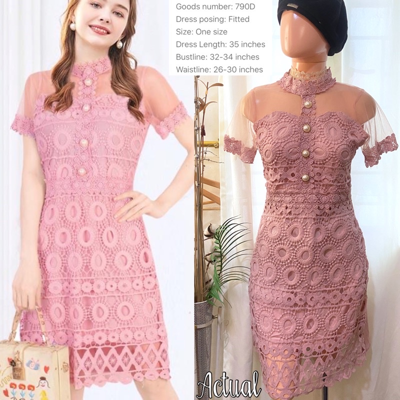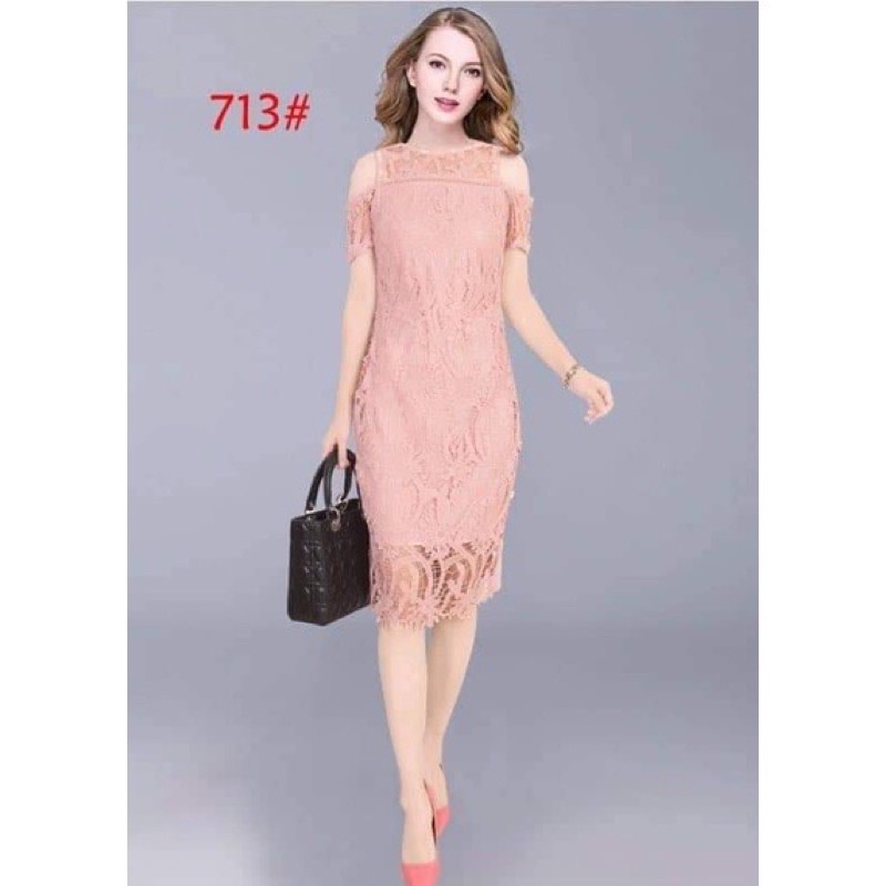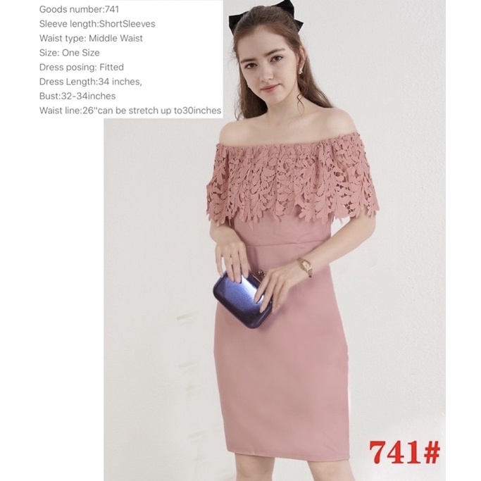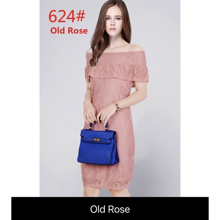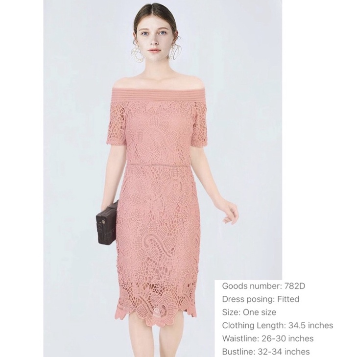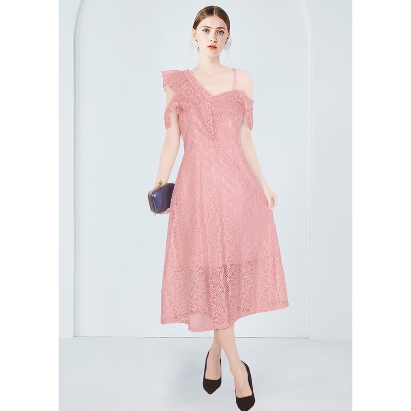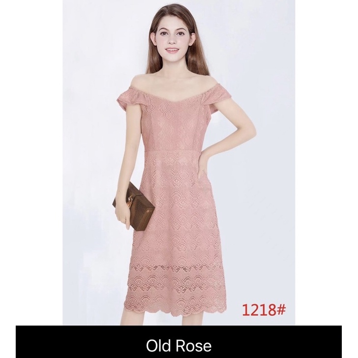 OLD ROSE PINK Elegant classy formal casual lace offshoulder wedding bridal evening cocktail dress