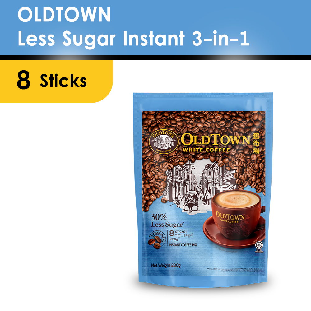 OLDTOWN Less Sugar Instant 3in1 Premix White Coffee, 8 sticks