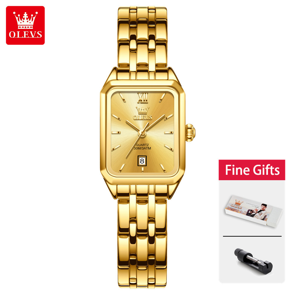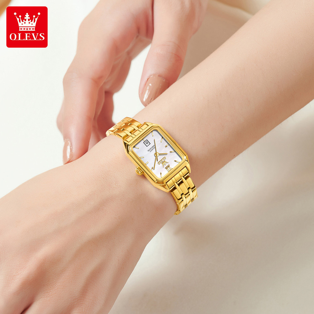 OLEVS Watch For Women Waterproof Original With Box Stainless Steel Strap Blue Gold White 5616