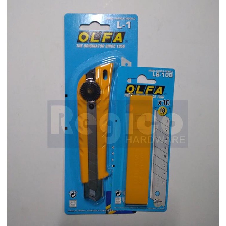 OLFA Cutter (L-1) with spare blades (LB-10B) Regico Hardware