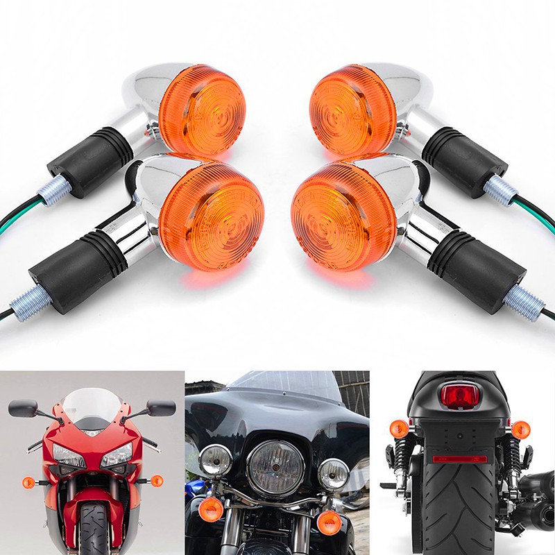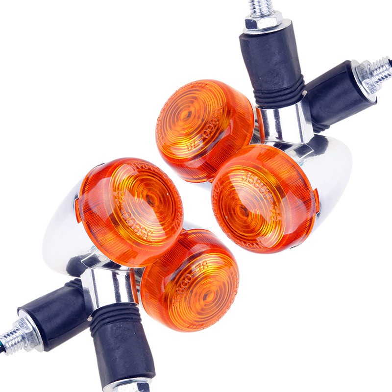 OM 4Pcs Motorcycle Turn Signal Light Bullet Blinker Amber Indicator Chrome Rear