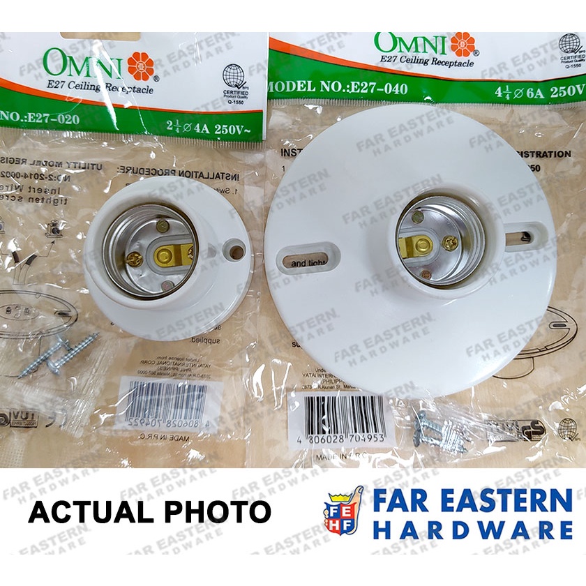OMNI Ceiling Receptacle Socket w/ Pull Chain Tap PVC E27 | E14 Candelabra 2-1/4" | 4-1/4"