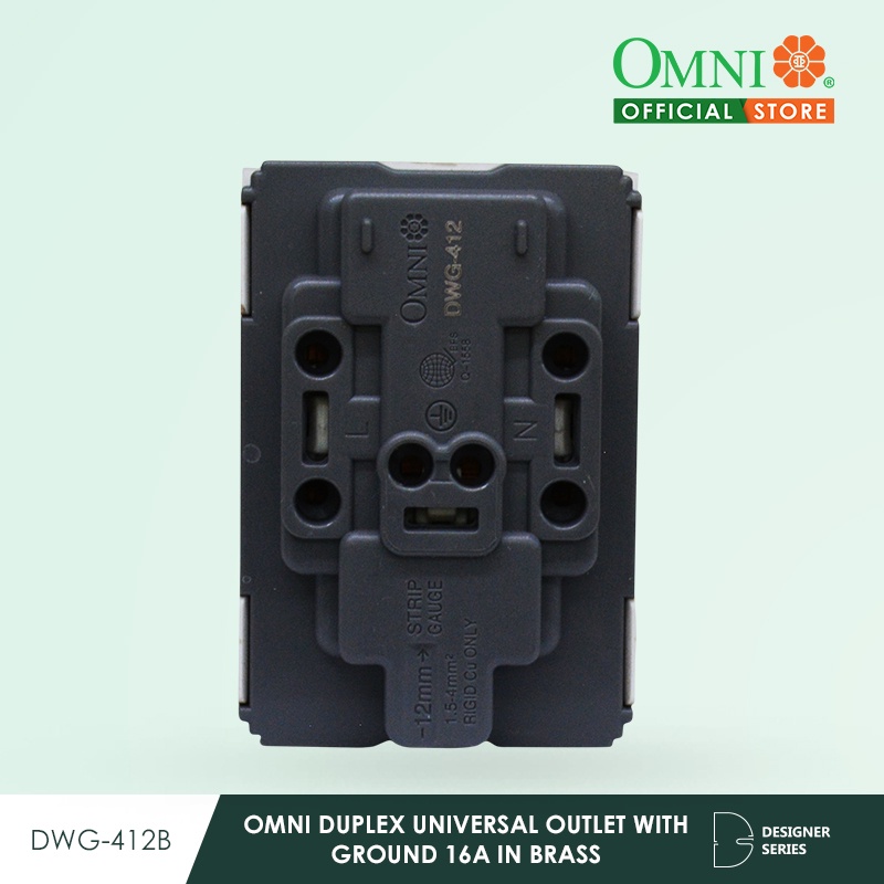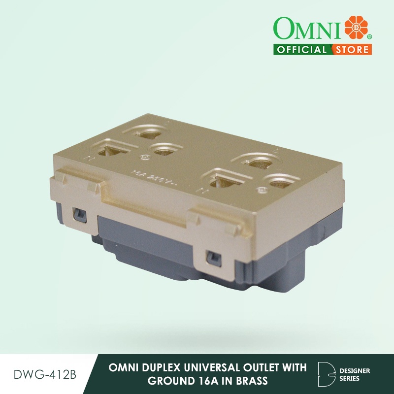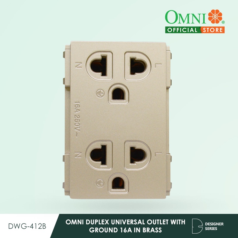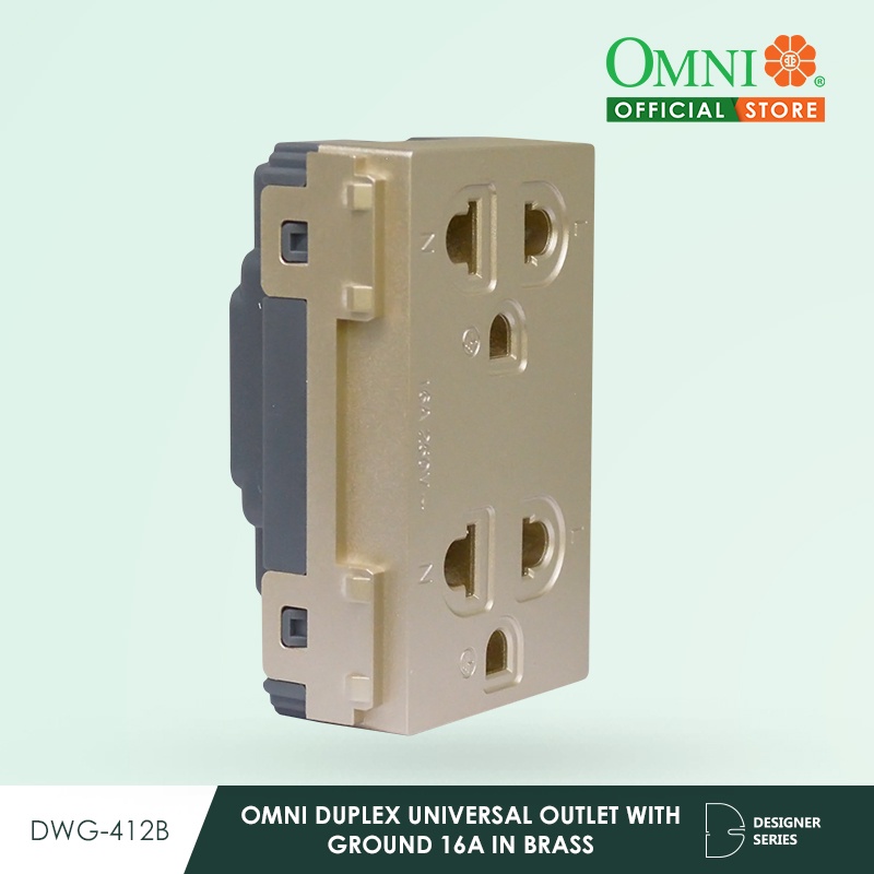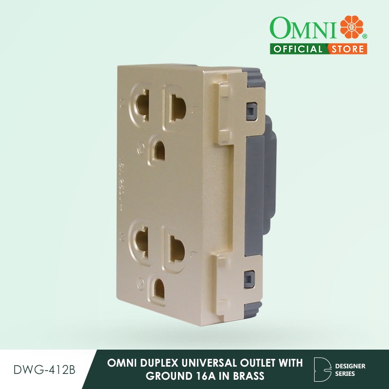 OMNI Duplex Universal Outlet with Ground 16A in Brass - DWG-412B