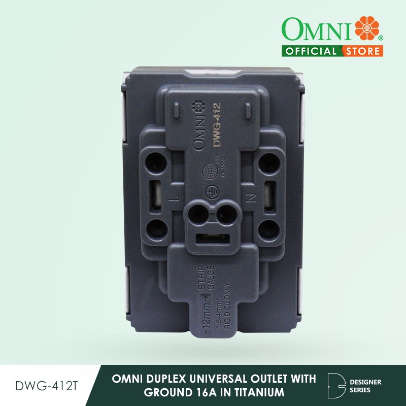 OMNI Duplex Universal Outlet with Ground 16A in Titanium - DWG-412T