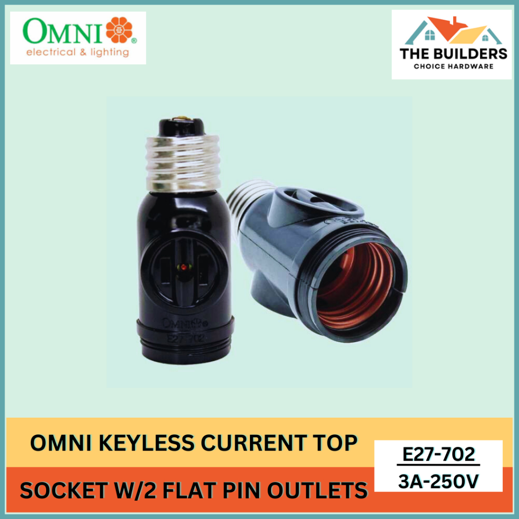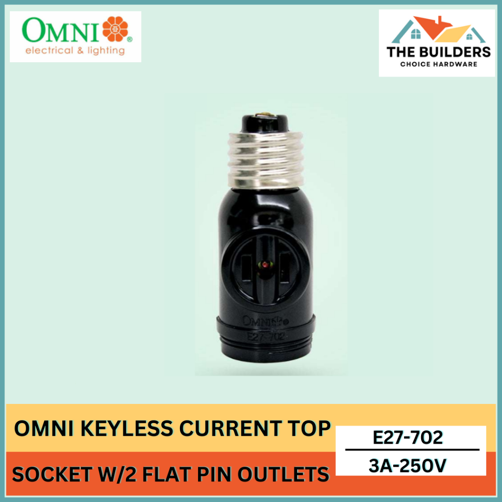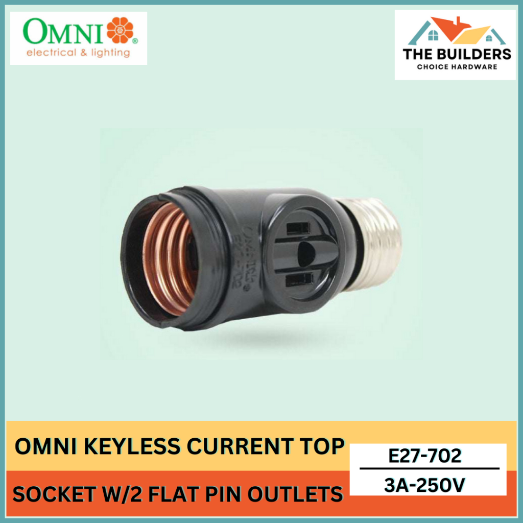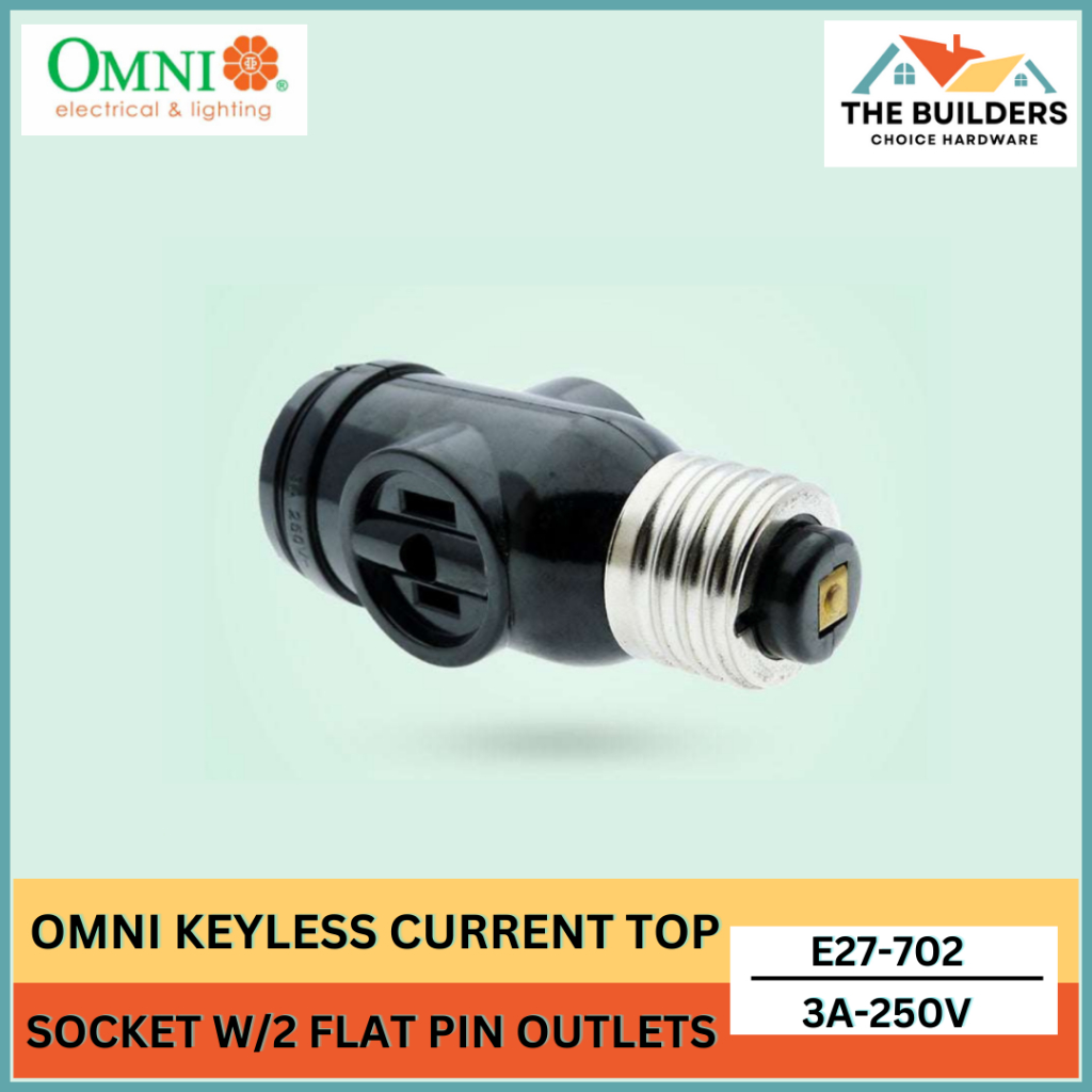 OMNI E27-702 1 PC KEYLESS CURRENT TAP SOCKET WITH 2 FLAT PIN OUTLETS
