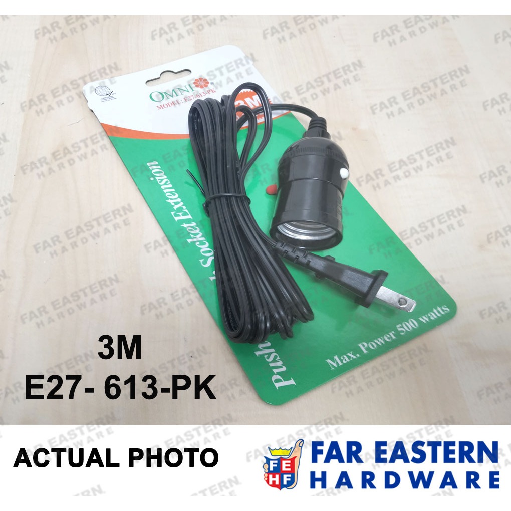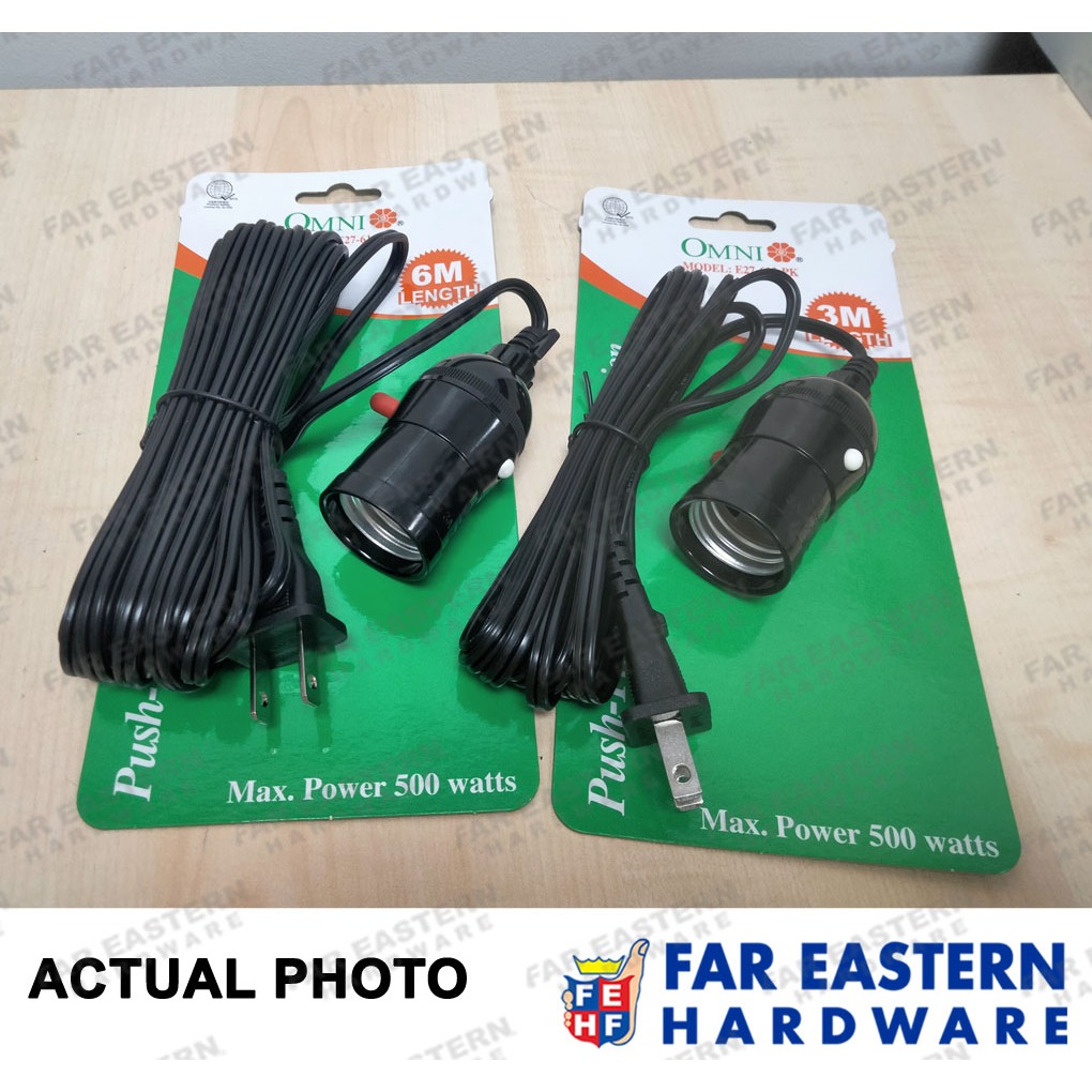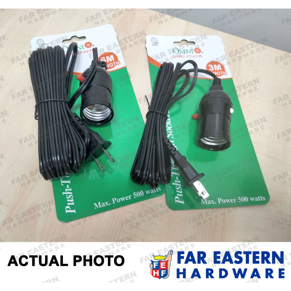 OMNI Push Through Bulb Socket With Extension Cord 500W