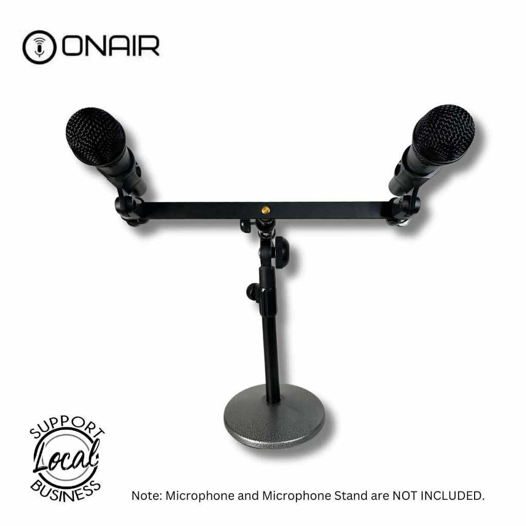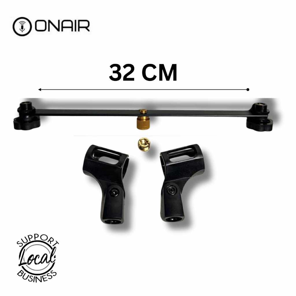 ONAIR Double Microphone Holder With Mic Holder Adaptor Bar Dual Mic Mount Adapter for Mic Stand