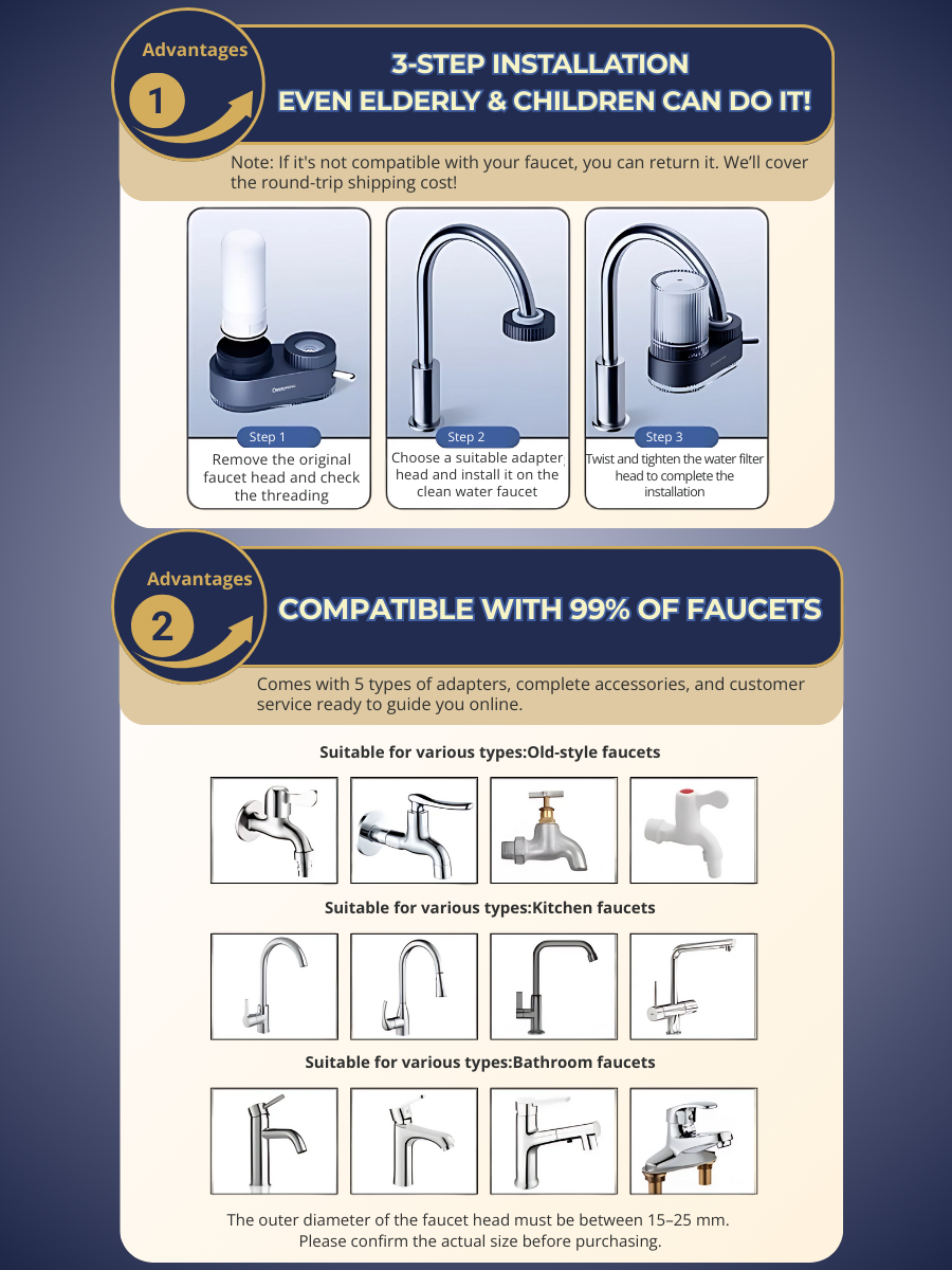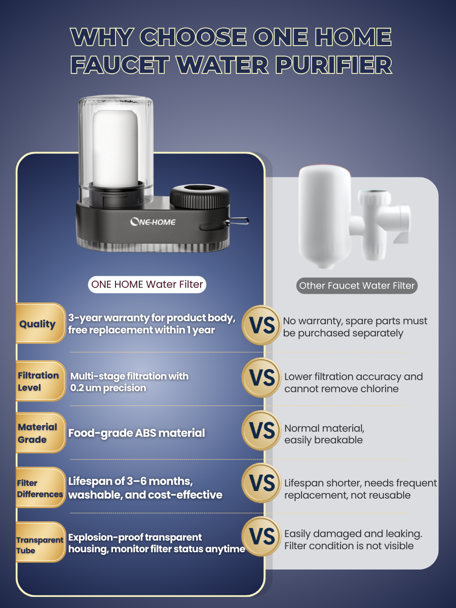 ONE HOME Water Filter Faucet Water Purifier Tap Water Filter Kitchen Bathroom Easy installment