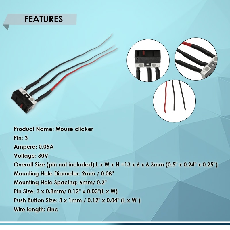 ONE PC MOUSE CLICKER SWITCH with WIRE, 3 MILLION CLICK, 3-PIN 0.05A 30V, BEST FOR MOUSE CLICKER