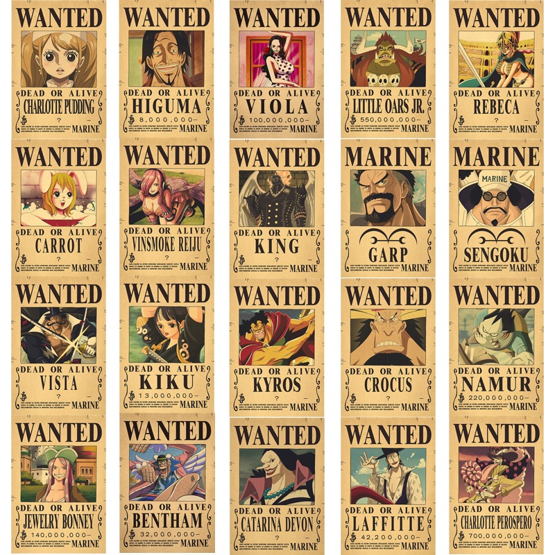 ONE PIECE Poster IZO ROCKS BECKMAN wanted Anime Family portrait Vintage kraft paper wallpaper For wall decoration (50-100 of 144) 42*28.5cm