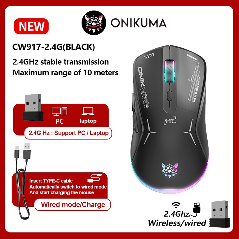 ONIKUMA CW917 Gaming Wireless Mouse Rechargeable Silent Optical Mouse USB Computer Laptop Mouse 2.4G