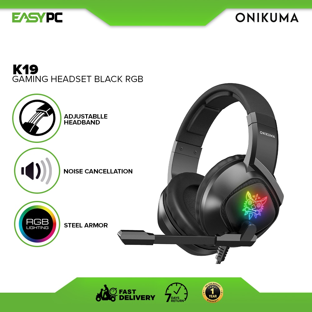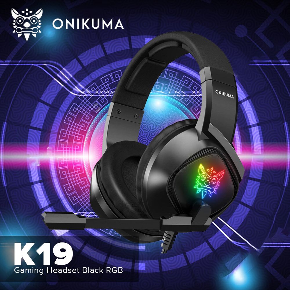 ONIKUMA K19 Gaming Headset Black RGB, Noise Reduction microphone, immersive sound quality Compatible
