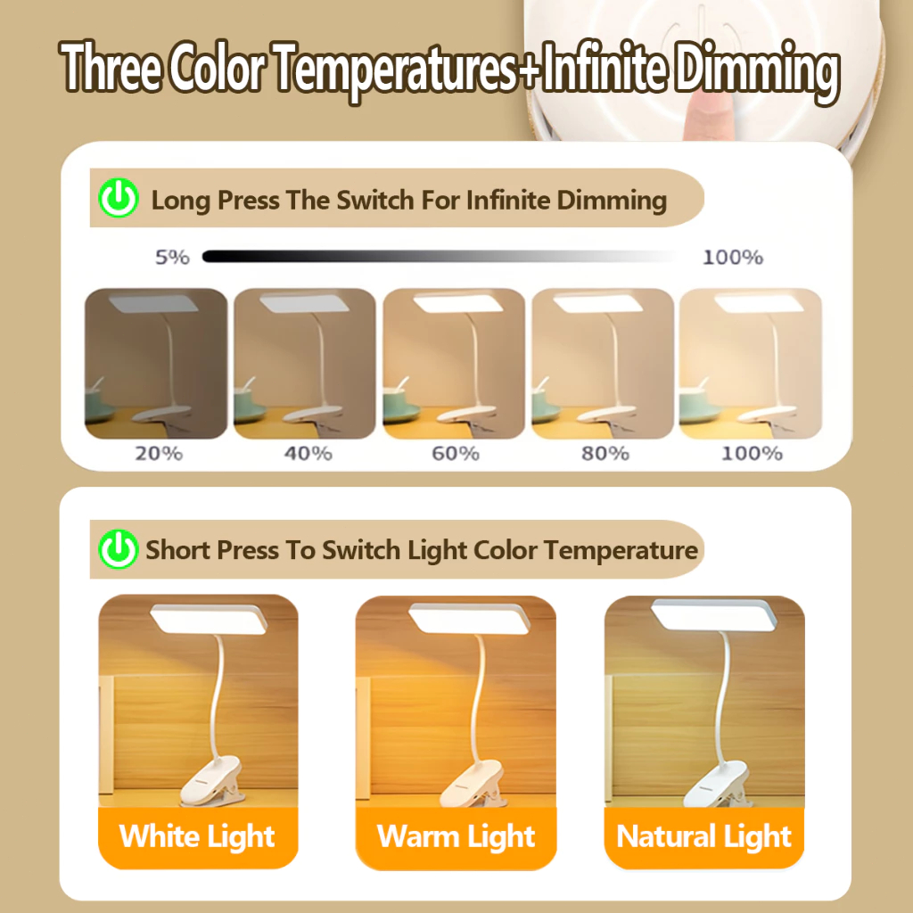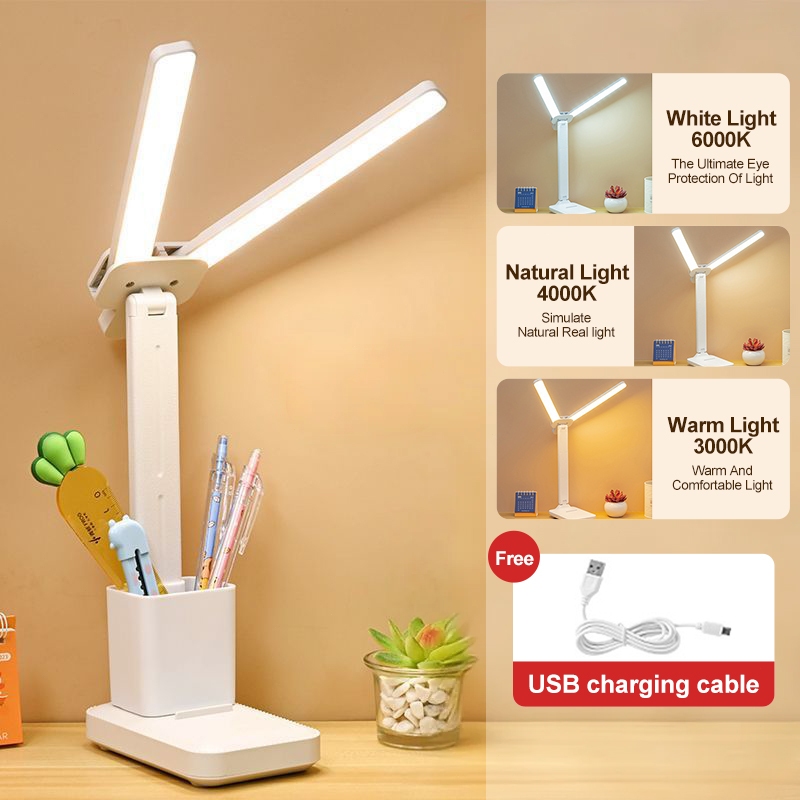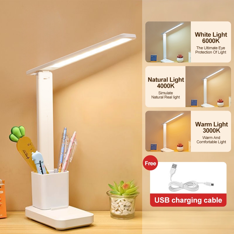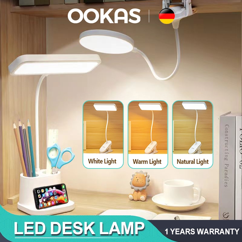 OOKAS LED Table Lamp Study Desk Lamp With Storage Box USB Rechargeable 3-Colors Reading Lights