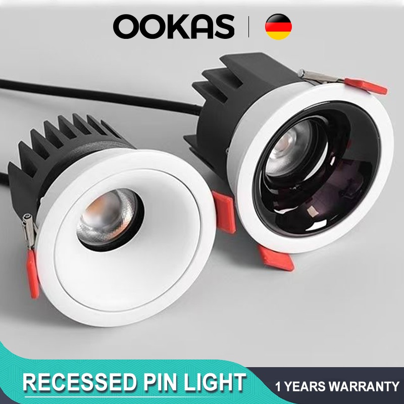 OOKAS Recessed Pin Light LED Ceiling Downlight Tri Color Spot Light Ceiling Lamp Indoor Panel Lights