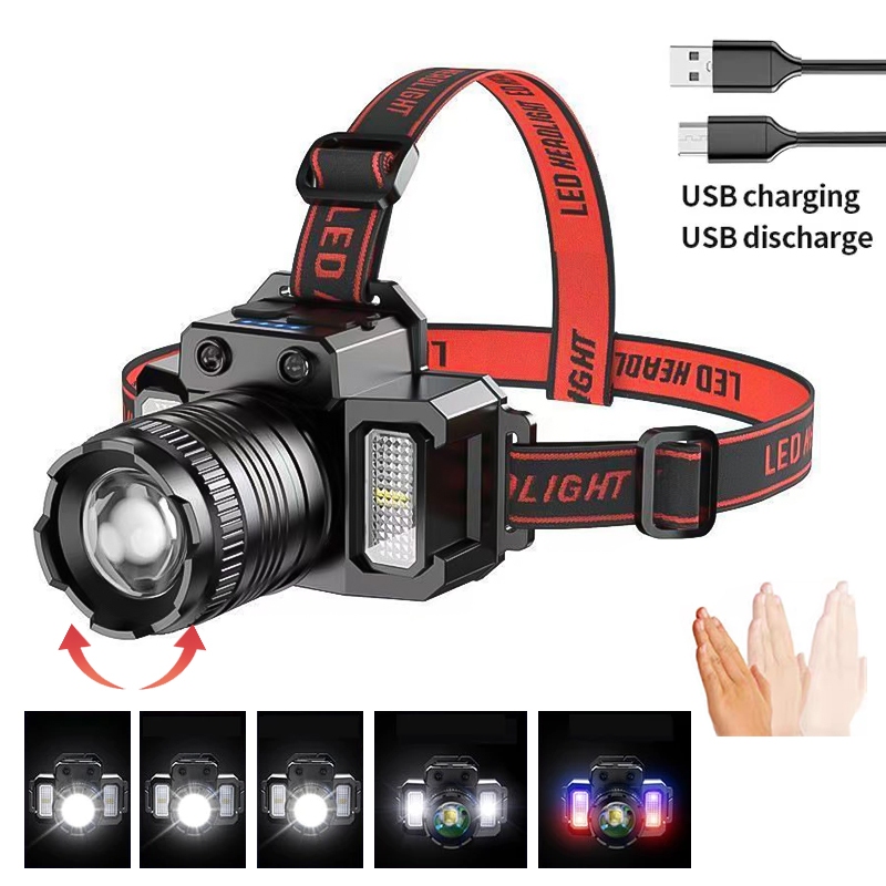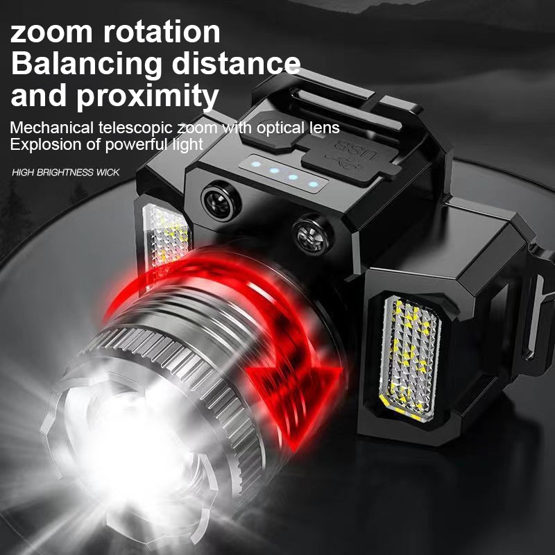 OOKAS Strong Headlight Flashlights Rechargeable Waterproof Telescopic Headlamp LED Flashlights Night