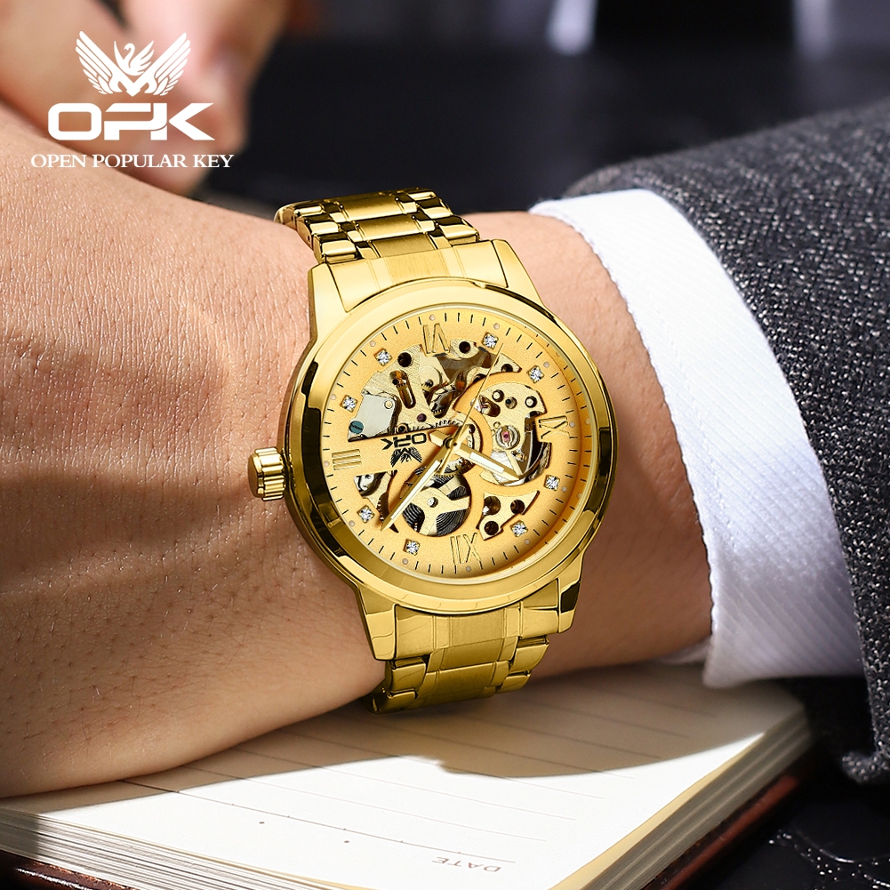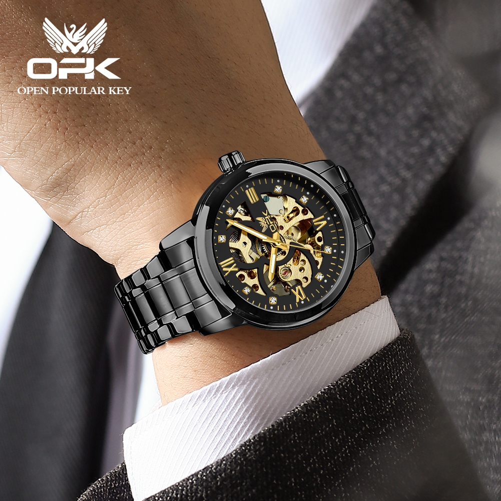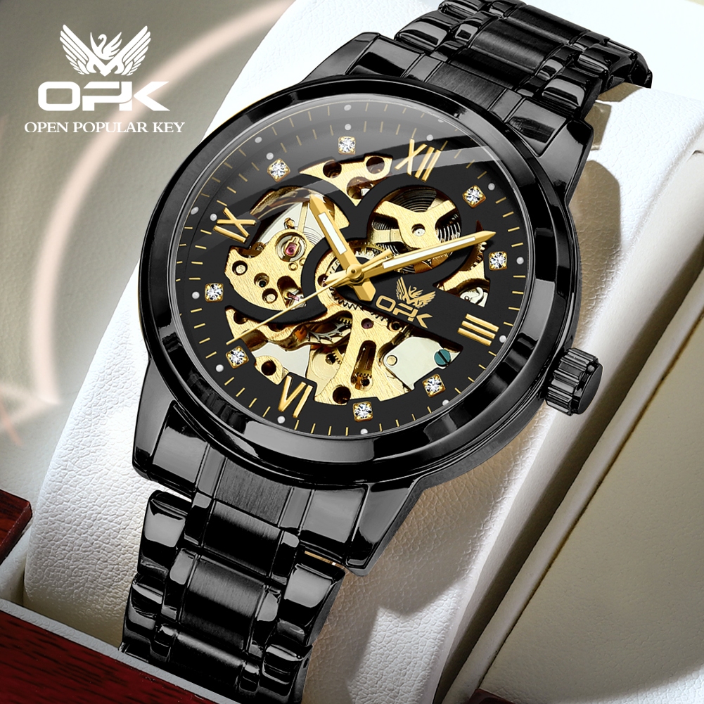 OPK Authentic Men's Watch Automatic Business Waterproof Mechanical Luminous Stainless Steel Watch For Men Original 8165