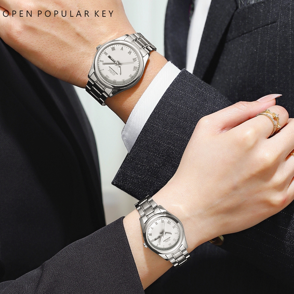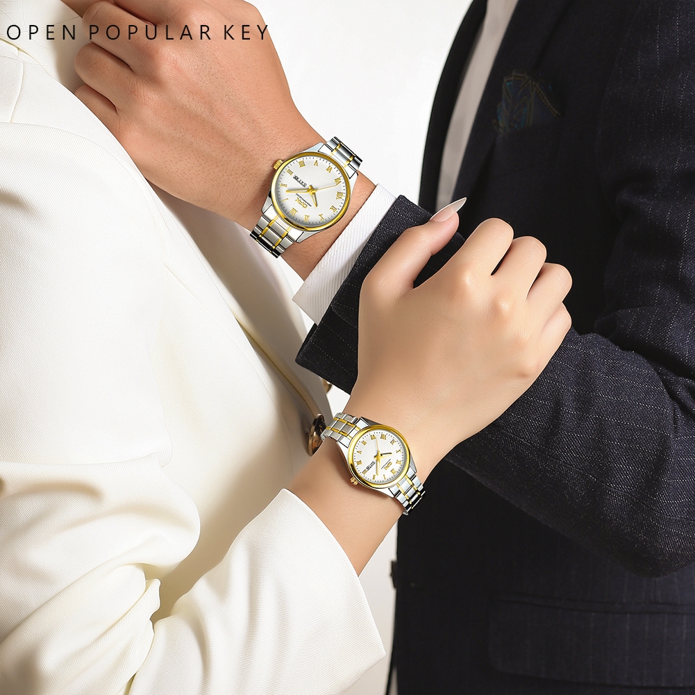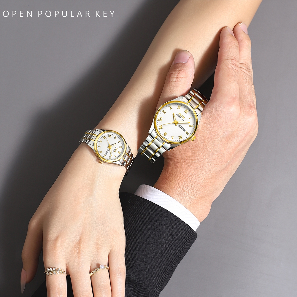OPK Couple Watch Waterproof Original Quartz Stainless Steel Wristwatch Set Anniversary Gift 8121