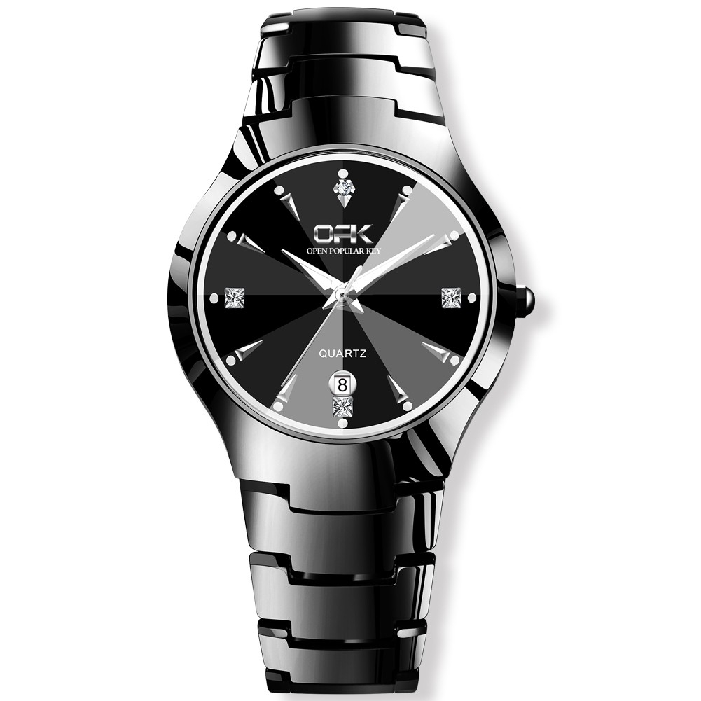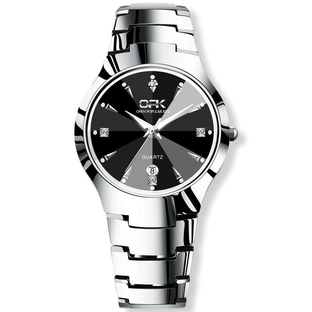 OPK Quartz Watch for Men Water Proof Stainless Steel Strap Silver/Black 8105n