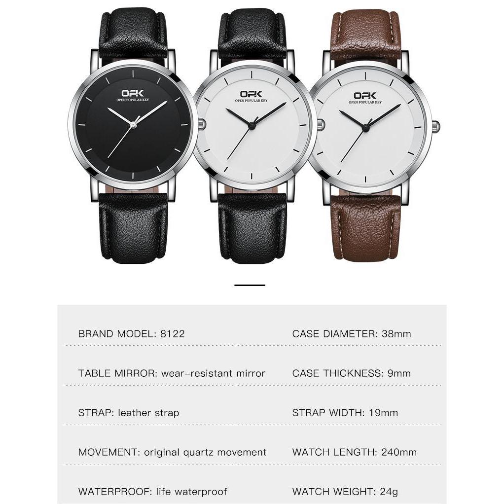 OPK Ultra Thin Watch For Men Mens Authentic Leather Original Waterproof Simple Watch Fashion Korean 8122