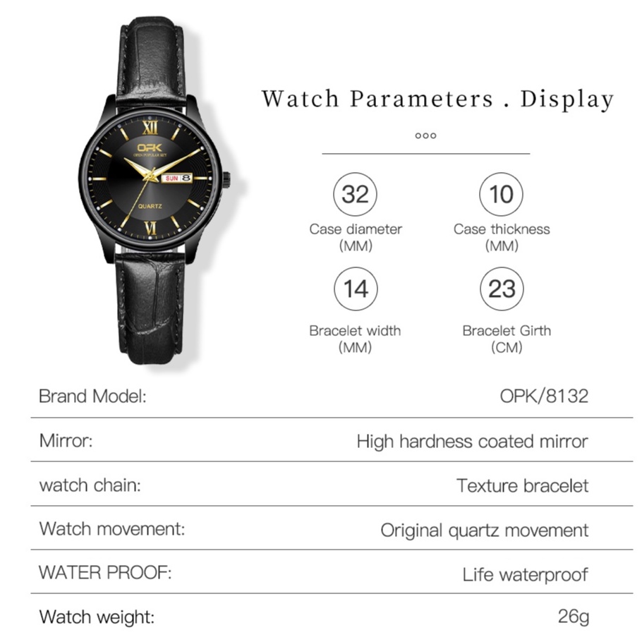 OPK Watch For Woman Elegant Original Waterproof With Box Female Watches Analog Leather 8132